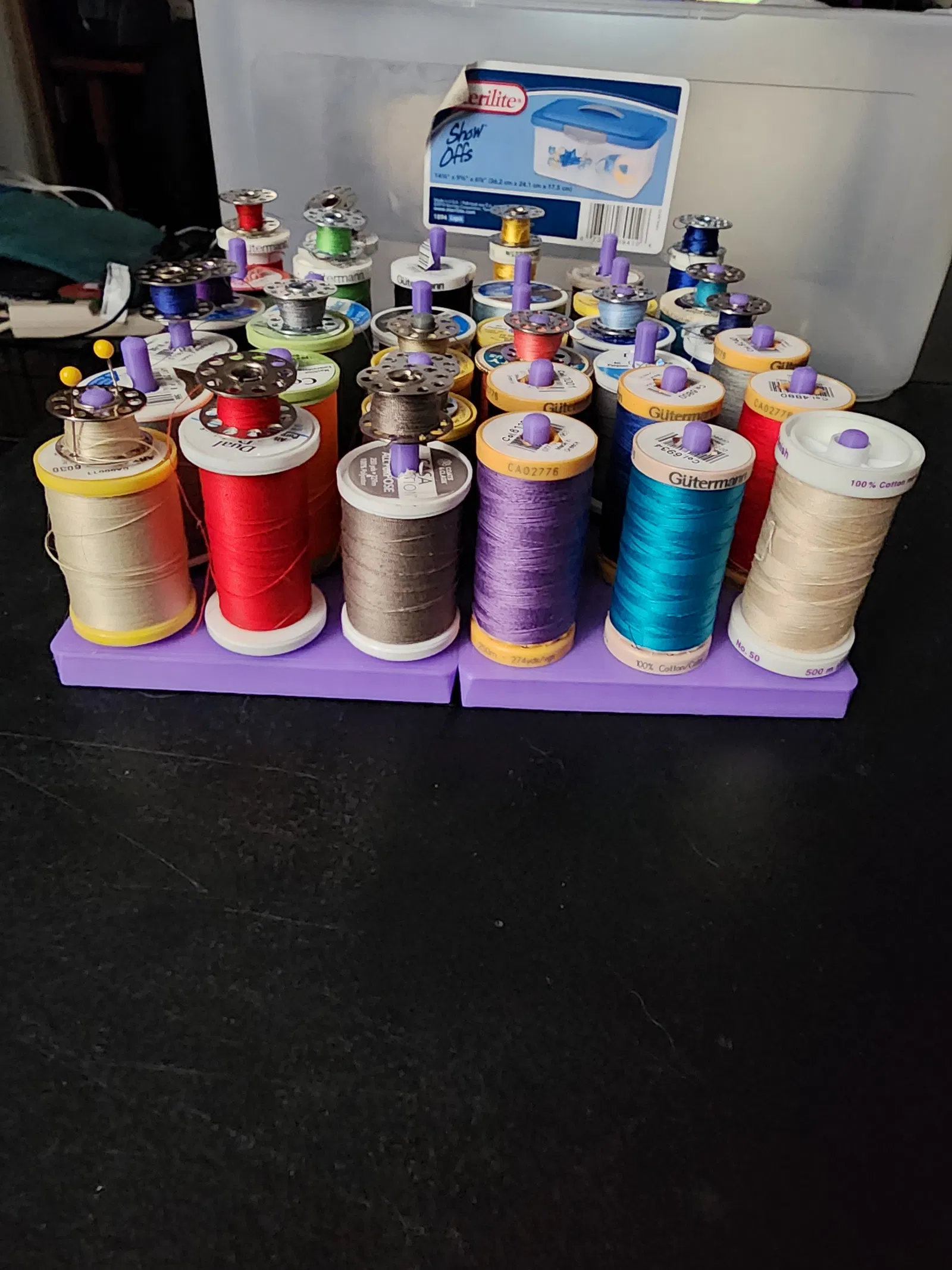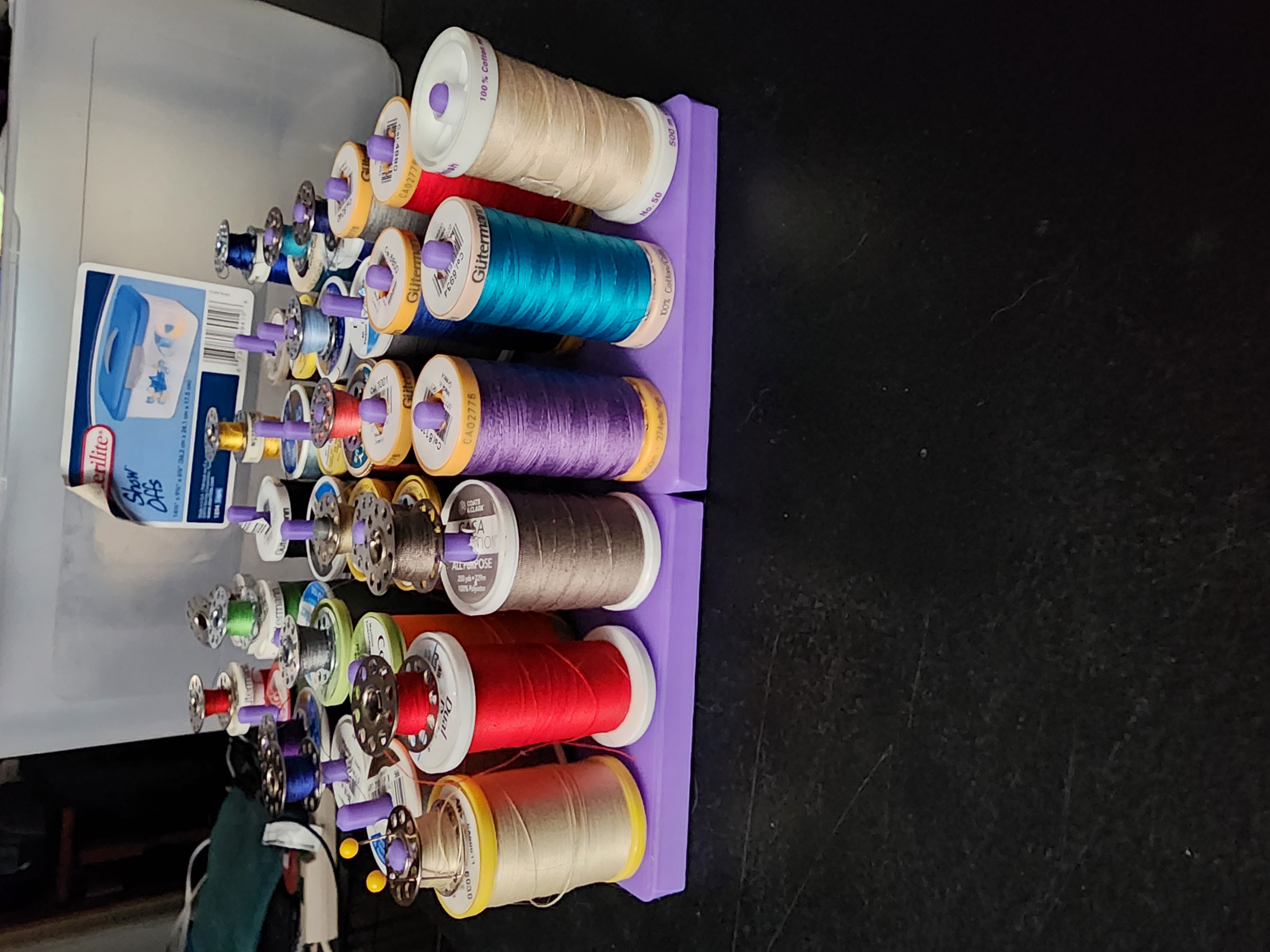 Nó chứa được 36 cuộn chỉ, có đủ chỗ trên mấy cái chốt để đựng chỉ kim cho phù hợp, với mấy cuộn chỉ kích cỡ tiêu chuẩn thông thường.