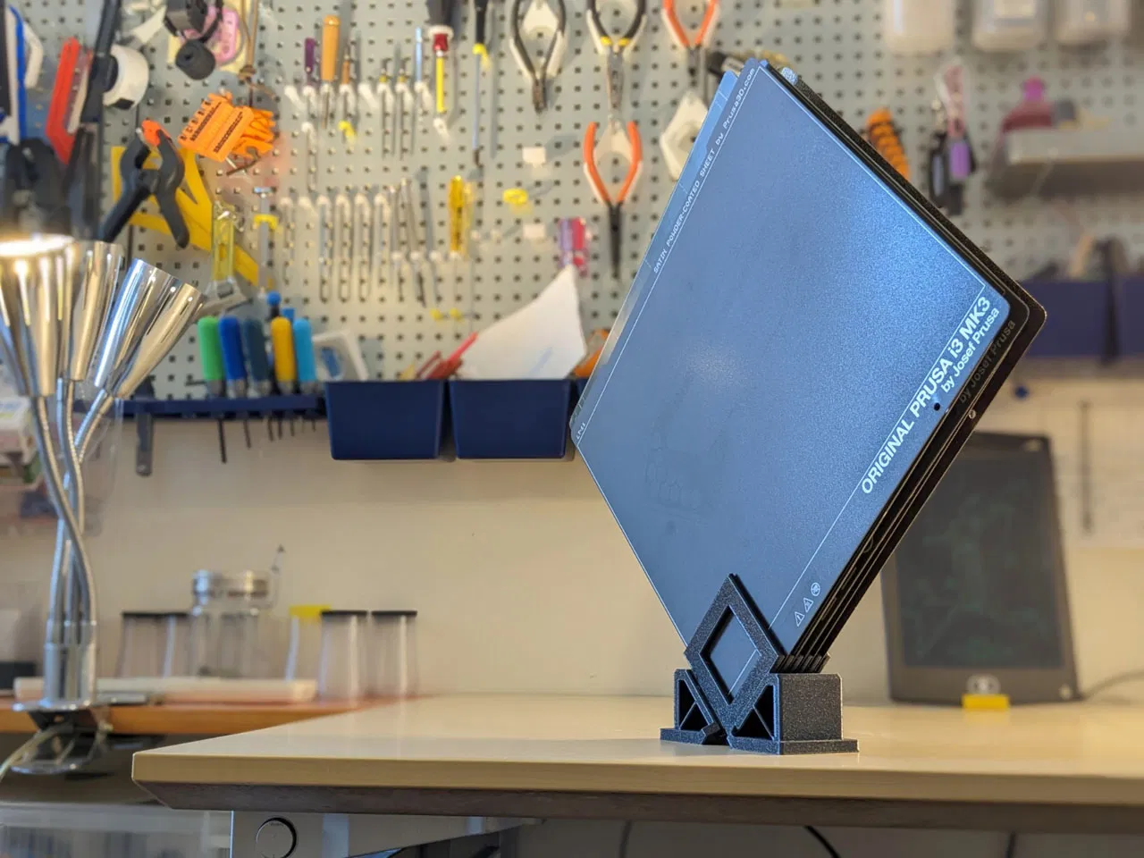 Cái kẹp giữ tấm thép này có thiết kế độc đáo cho phép bạn cất giữ tấm thép chỉ với một góc.