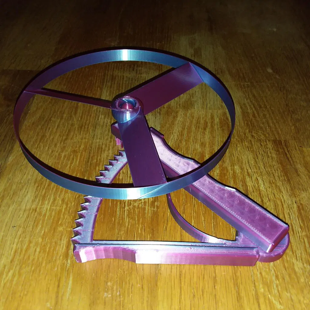 Món đồ chơi phóng cánh quạt bay này dùng cơ chế bóp, không cần dây kéo. Gắn đĩa vào, bóp mạnh là phóng! Lưu ý cẩn thận kẹp tay. Hơi khó chơi cho trẻ nhỏ. In nguyên khối, không cần lắp ráp. Nên dùng tree supports và tùy chỉnh cài đặt in tường ngoài trước để tránh bị kẹt.
