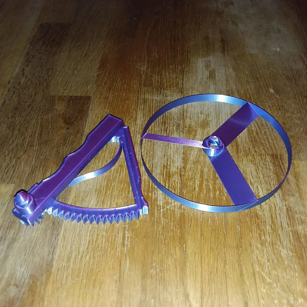 Tôi đã cố gắng tạo khoảng trống quanh bánh răng và các khớp đủ rộng để thường thì nó sẽ in tốt mà không bị kẹt. Nhưng lúc đầu nó sẽ hơi kẹt, thường là ở bánh răng nhỏ. Vì vậy, tùy thuộc vào filament và độ tốt của máy in, bạn có thể cần phải tác động một chút để phần đó hoạt động trơn tru. Tôi thường phải bóp mạnh nhiều lần liên tiếp để làm lỏng ra sau khi in. Quan trọng: Trước khi in Đĩa, bạn có thể cân nhắc in "Công cụ gỡ Đĩa (Disk Remover Tool)" để giúp bạn lấy đĩa ra khỏi bàn in. Đôi khi đĩa khá mỏng manh và phần lõi dính vào bàn in tốt hơn nhiều so với vành đĩa, nên việc lấy ra mà không có công cụ sẽ hơi khó khăn.