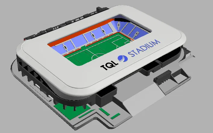 Mô hình in 3D dễ dàng của sân vận động FC Cincinnati. Sân vận động TQL ở Ohio, Hoa Kỳ, là sân nhà của đội bóng đá Major League Soccer. Mô hình này không cần hỗ trợ và có hai phiên bản.