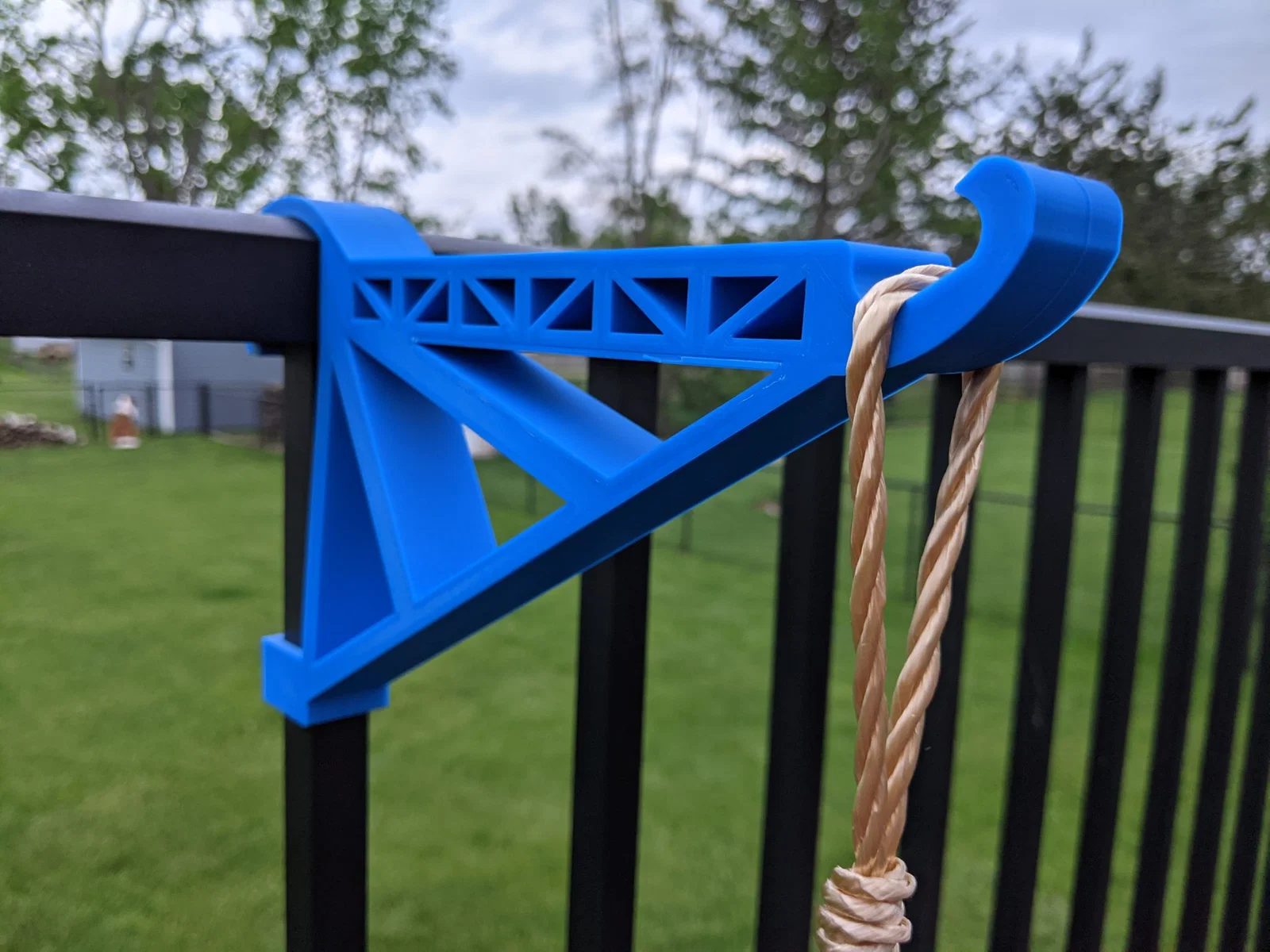 Giá treo này được thiết kế tùy chỉnh cho lan can nhôm trên boong của chúng tôi. Nó là một bản in đơn và gắn vào chỗ. Cần có các hỗ trợ trên kẹp lan can.