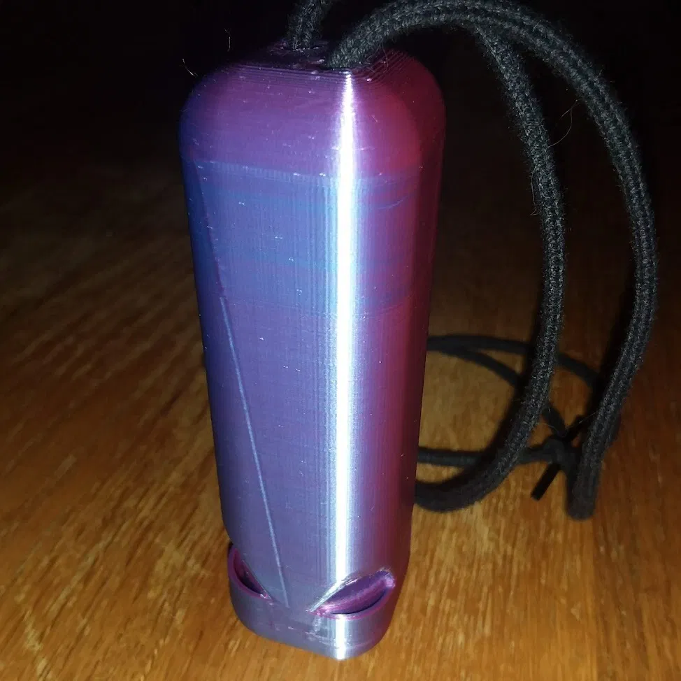 Đây là còi tàu hơi nước 4 tông do mình tự thiết kế. Nhỏ gọn để vừa trong túi áo, mà âm thanh lại hay bất ngờ. Nên in tương đối dễ dàng mà không cần hỗ trợ, dù có thể cần dọn dẹp lại sau khi in xong.
