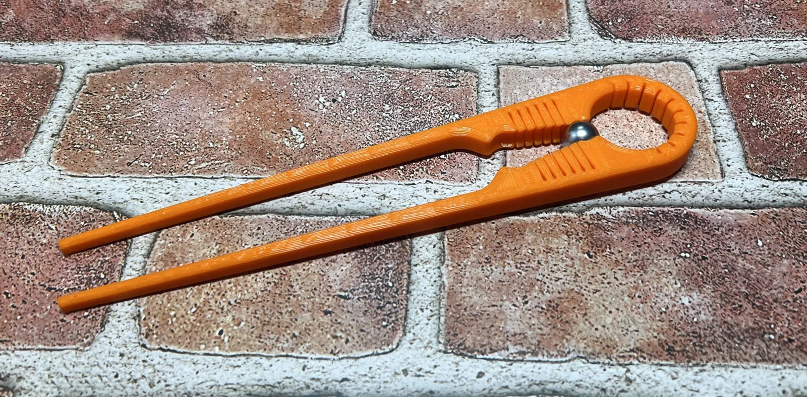 In với khoảng 4 lớp vỏ, 35% độ đặc. Anh ấy đã sử dụng PLA, mặc dù các loại filament khác có thể mang lại kết quả tốt hơn. Mẫu in bao gồm một đĩa hỗ trợ nhỏ ở cuối vì độ bám dính của giường in có thể là một thách thức với một phần dài và mỏng như đũa. Bạn có thể dễ dàng xé nó ra sau khi in hoặc dọn dẹp bằng dao Xacto.