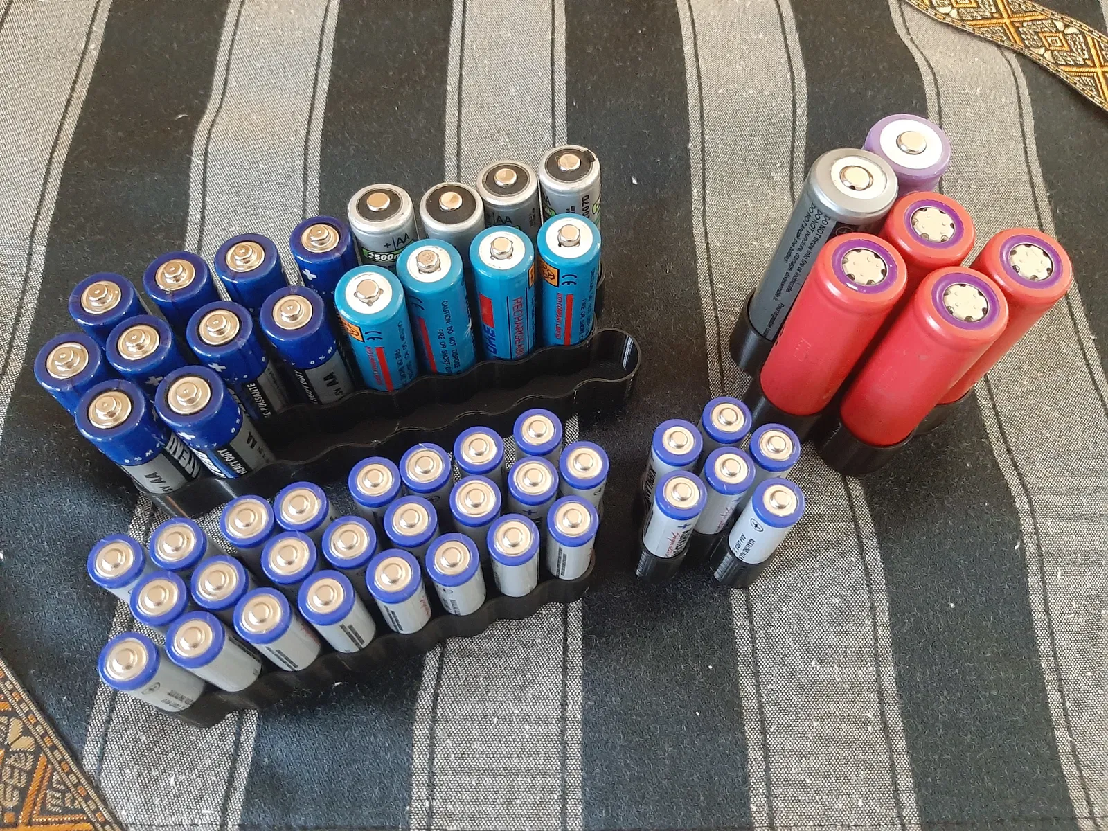 Các ô pin cũng được xếp theo kiểu "lục giác" để tiết kiệm không gian (như mọi công cụ sắp xếp khác!) và các vách ngăn giữa các ô pin khá mỏng (0.8-1.2mm tùy thuộc vào mẫu bạn tải xuống). Điều này làm cho mô hình nhỏ hơn, bạn có thể lưu trữ nhiều pin hơn trong không gian ít hơn so với một số lựa chọn khác mà tôi từng thấy.