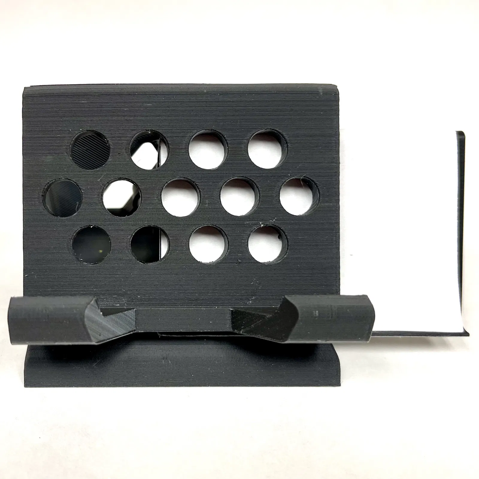 Giá đỡ này có một bộ phận chèn có thể được sử dụng để giữ giấy màu sao cho có thể thêm màu nền phía sau các khu vực cắt hở.