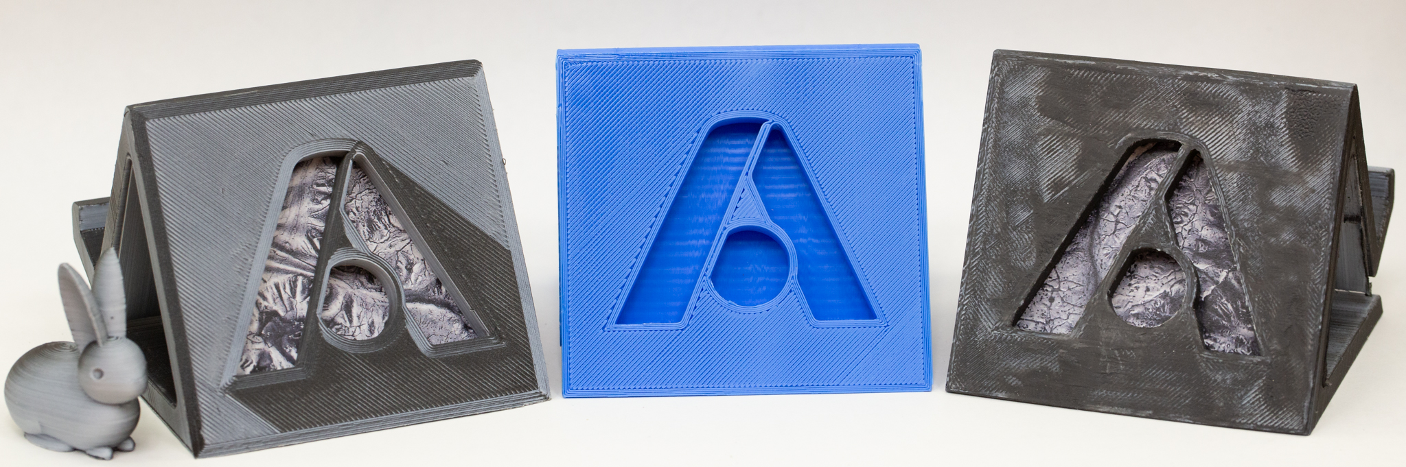 Lưu ý khi chế tạo: in mặt logo úp xuống trên bàn in cho FDM. Điều này tạo ra các cạnh và thành sạch nhất trên cấu trúc logo.