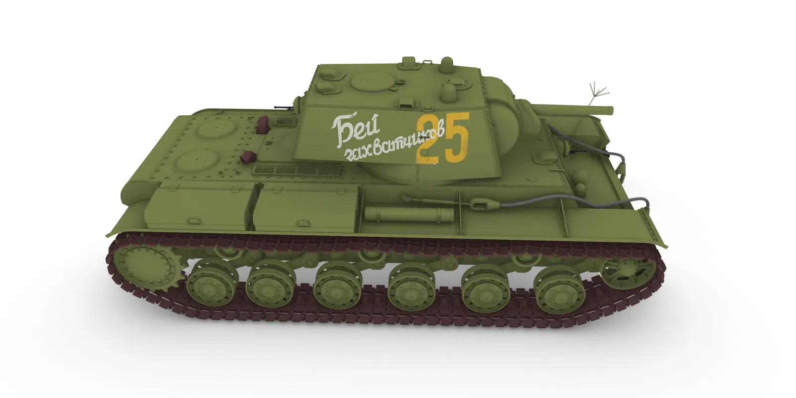 Mô hình xe tăng RC KV-1 tỉ lệ 1:10. Phiên bản này dựa trên mẫu xe sản xuất tháng 6 năm 1941. Mô hình có hệ thống lái điều khiển từ xa, khả năng xoay tháp pháo, điều chỉnh góc nâng/hạ nòng và cơ chế giật lùi. Tất cả các tài liệu cần thiết để chế tạo đều có trong hướng dẫn. Xem một số bản hoàn thiện tại https://www.thingiverse.com/thing:5069466/makes Tháp pháo cho phiên bản KV-2: https://www.f3d.vn/3d-model/103817-thap-phao-kv-2-cho-rc-tank-kv-1-ti-le-110 Bộ chuyển đổi cho phiên bản KV-1E: https://www.f3d.vn/3d-model/103814-bo-chuyen-doi-kv-1e-cho-mo-hinh-rc-kv-1-ti-le-110