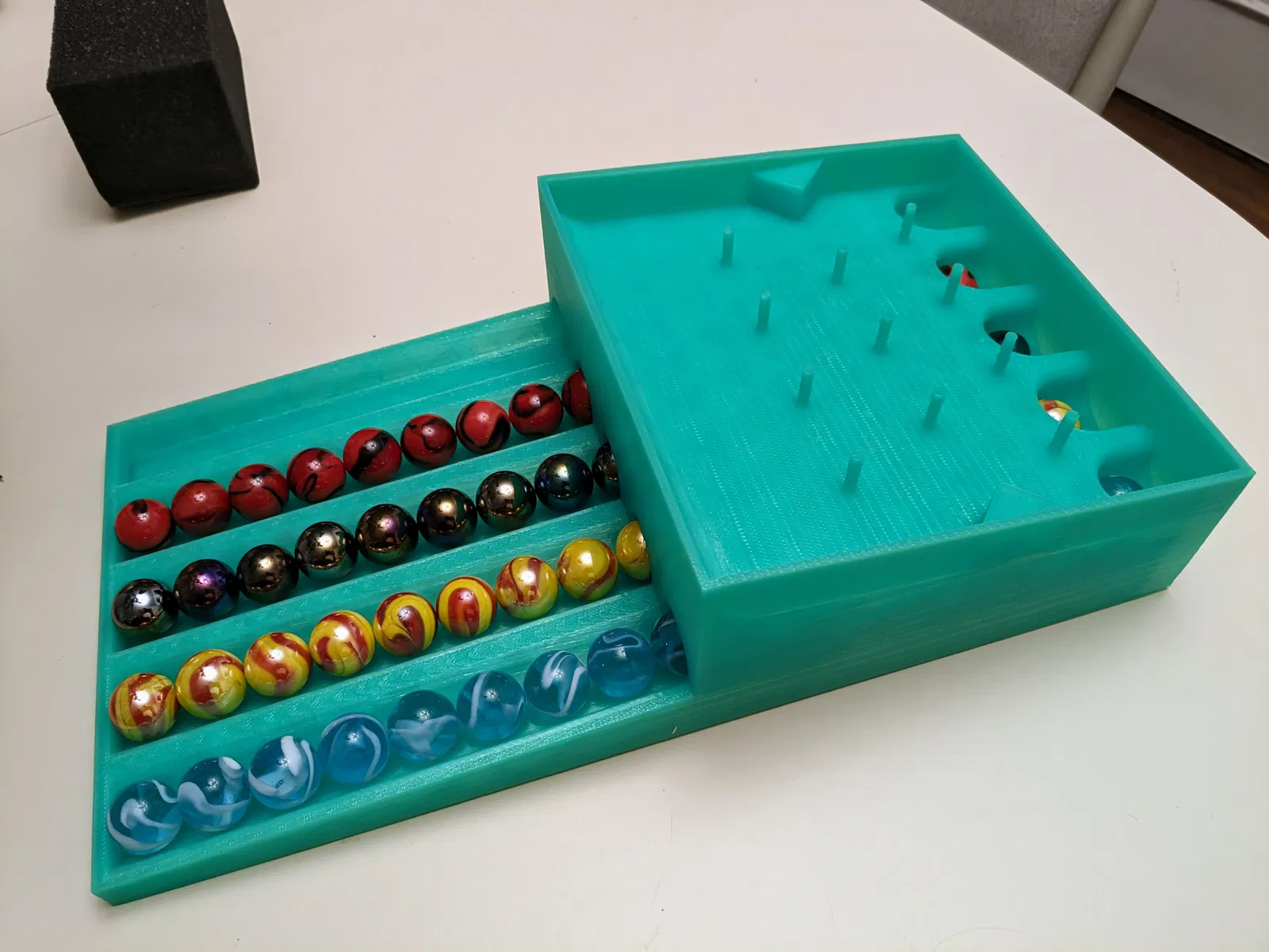 Thêm chút ngẫu nhiên vào việc phân phối bi cho "Nổ Bình Thuốc". Bản in thử nghiệm này dùng PLA, lớp 0.15mm, đầu phun 0.4mm trên Voron Trident 350mm, sợi nhựa iiidmax Fluorescent Green PLA+.