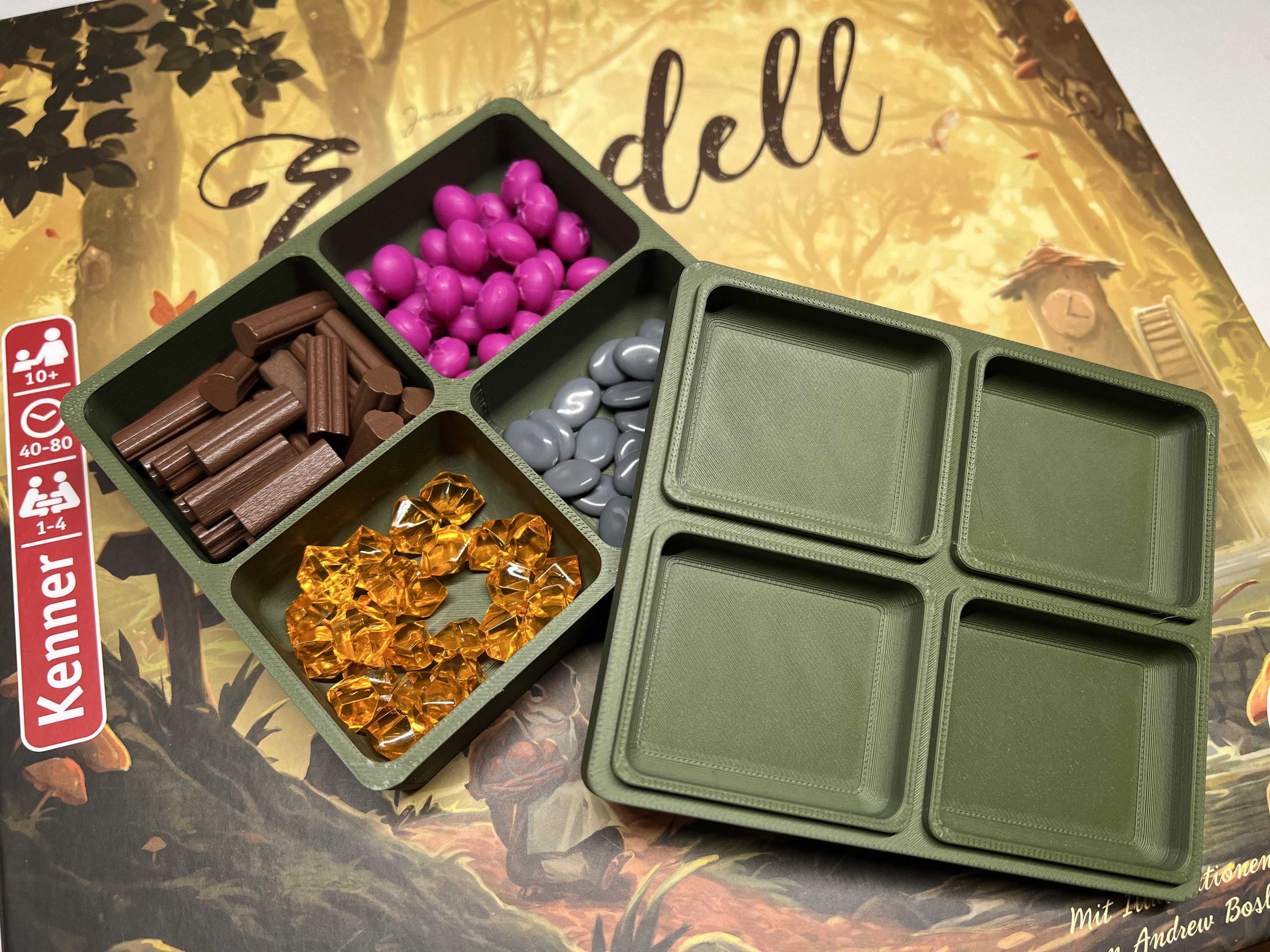Bạn @Fabmaszter thiết kế hộp đựng tài nguyên xịn xò cho Everdell, nhưng lúc vận chuyển đồ hay bị rớt ra ngoài. Giờ thì có nắp đậy này rồi, ôm sát khay, không sợ rớt đồ nữa. Các ngăn nắp còn có thể dùng lúc chơi game luôn nha.