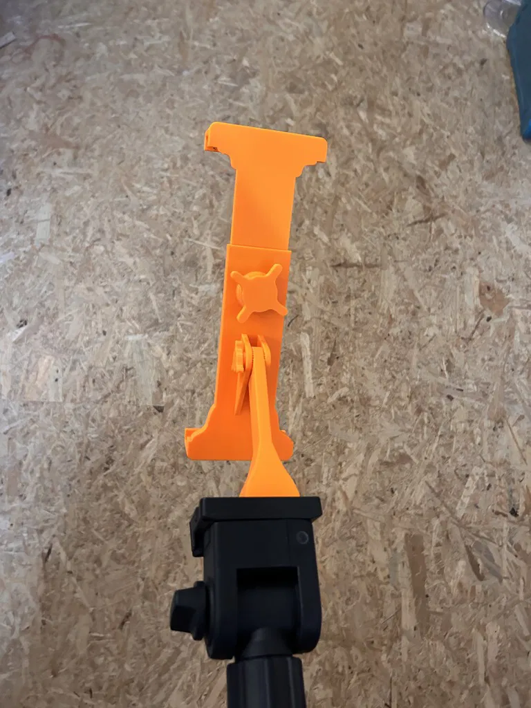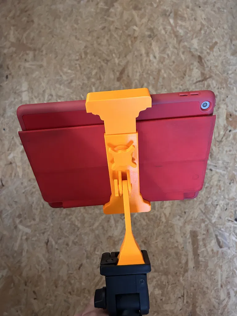 Giá đỡ iPad dễ sử dụng cho chân máy ảnh tiêu chuẩn. iPad vừa vặn chắc chắn, có hoặc không có ốp lưng, có thể điều chỉnh liên tục bằng vít cố định. Có thể xoay theo một trục. Cần cẩn thận vì khi nghiêng sang một bên quá nhiều và vít bị lỏng, iPad có thể bị trượt ra ngoài. Phù hợp với tất cả các máy tính bảng có kích thước tương tự.