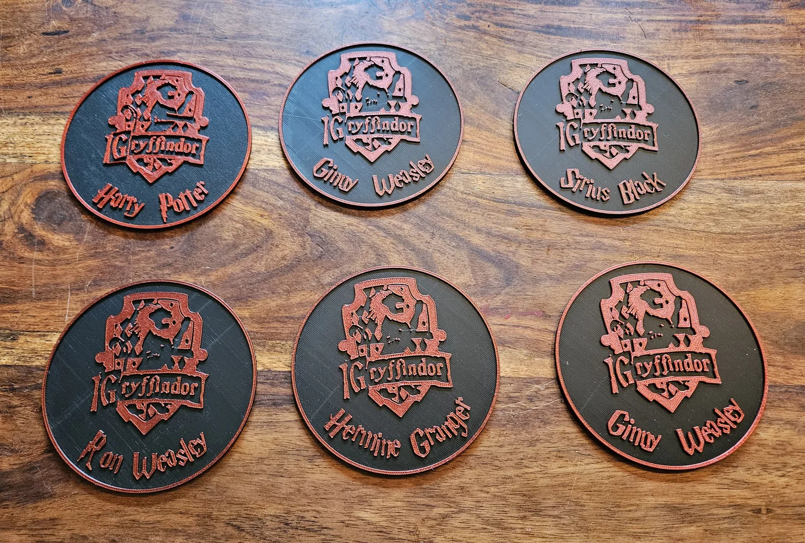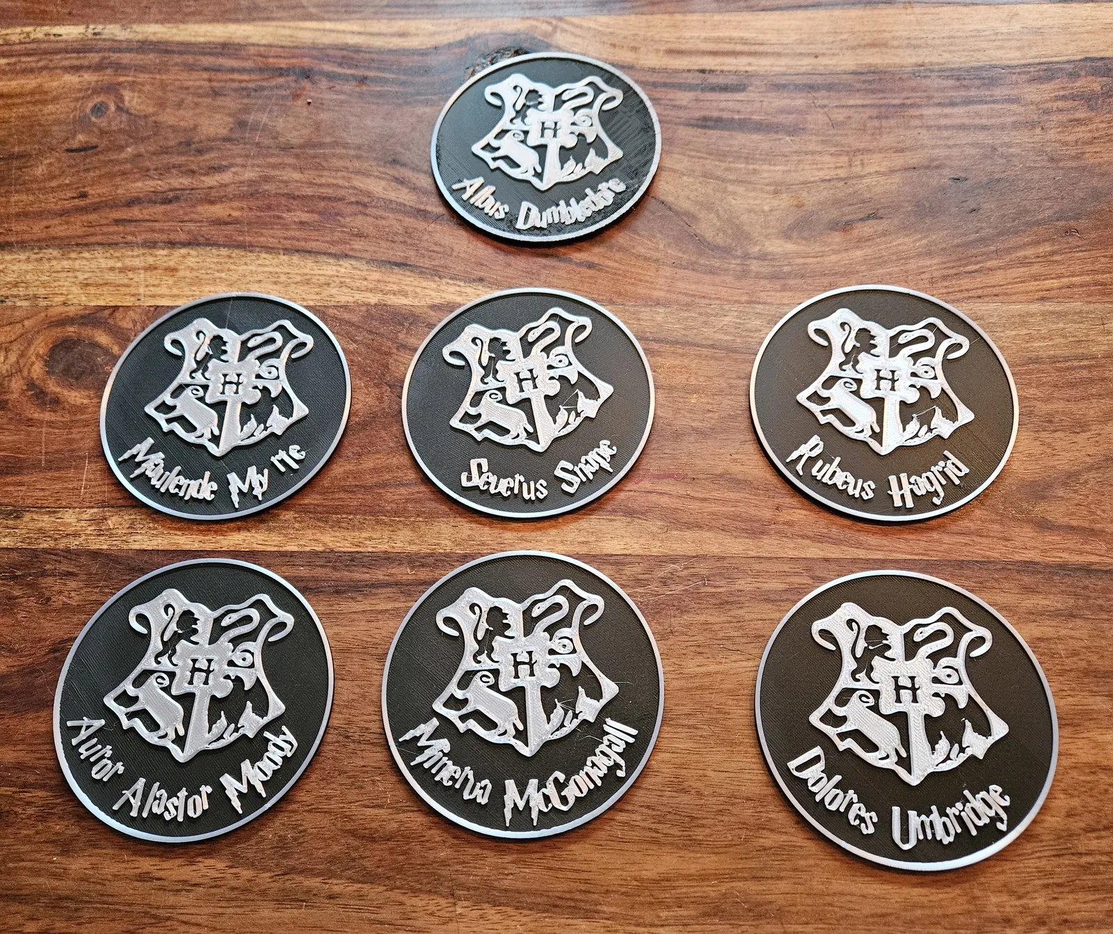 Tui thiết kế mấy cái đế lót ly này cho bữa tiệc Harry Potter, vừa làm đế lót ly vừa làm đánh dấu ly luôn. Bạn có thể tặng kèm với trò chơi. Ai xí ngầu ra số sáu thì được chọn một cái. Ai thua thì chịu. Hoặc là gì đó tuỳ bạn... Chúc vui vẻ!!! Đường kính là 100mm. In với đổi màu ở độ cao 2.2 mm.