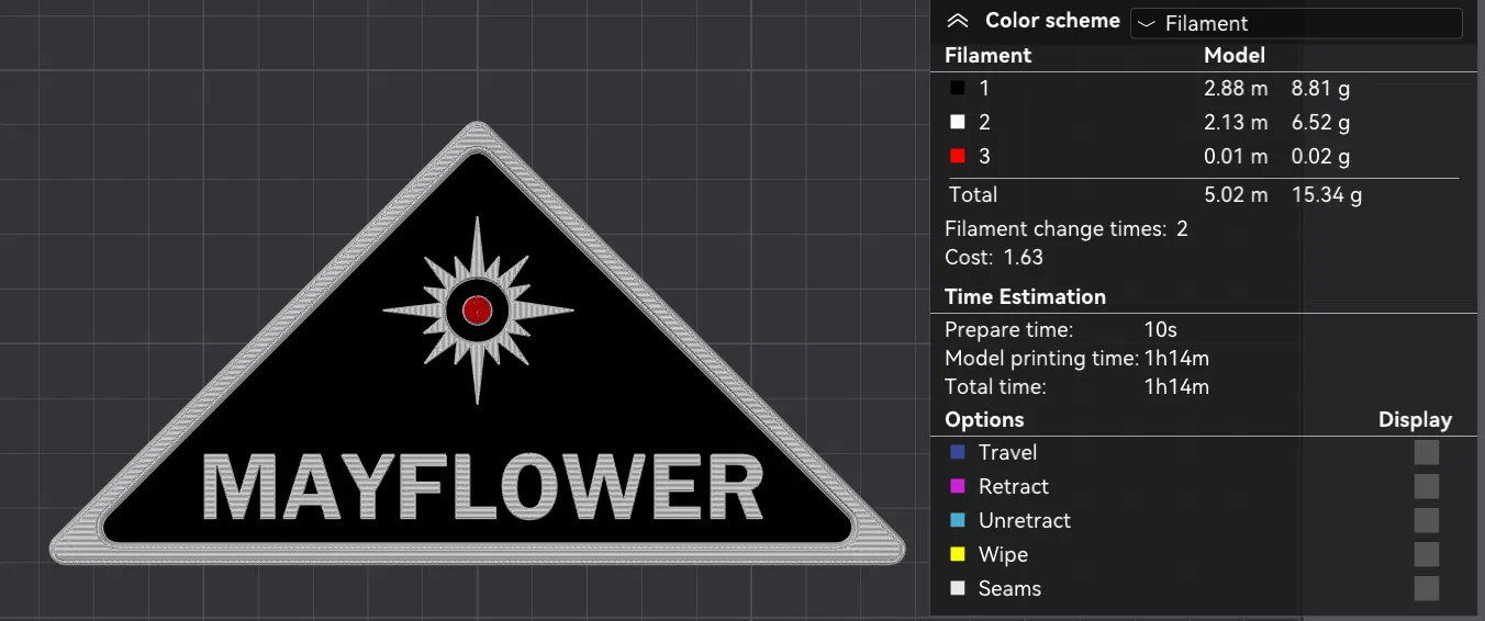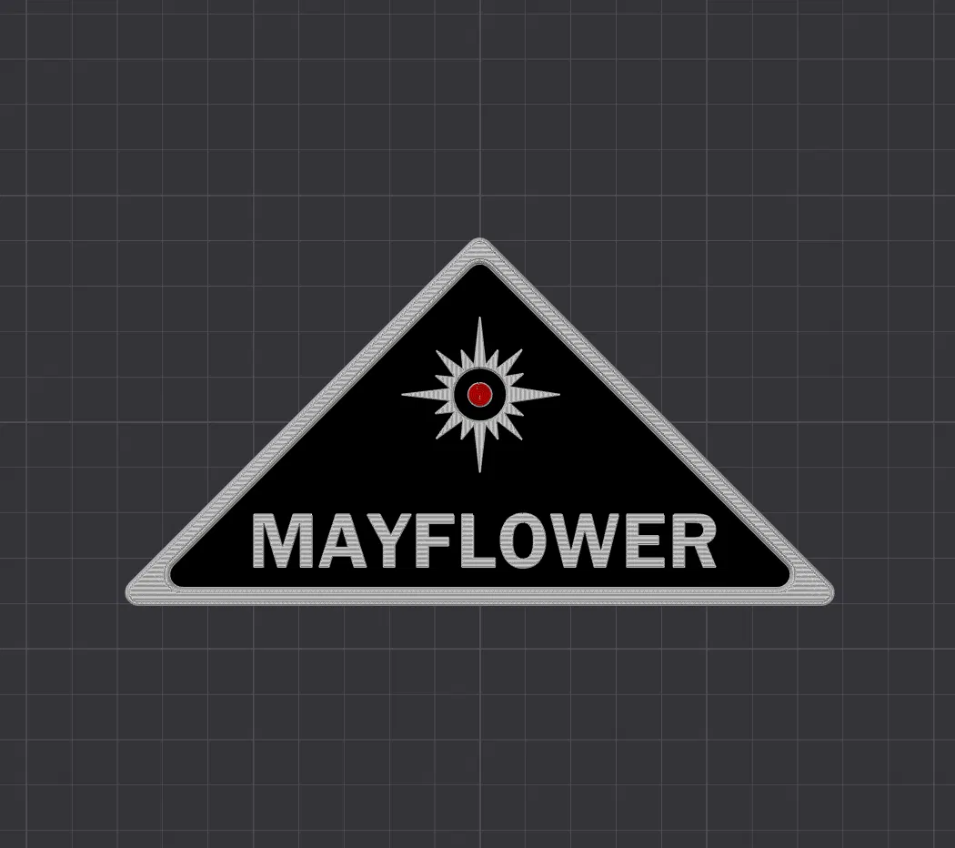 Dự án Mayflower là một nhóm bí mật gồm những người được chọn để trở về cùng người ngoài hành tinh trong phim "Close Encounters of the Third Kind". Logo này xuất hiện vài lần nhưng không rõ nét. Tôi đã làm việc dựa trên bản 4K của phim và có một vài chỉnh sửa theo ý tưởng cá nhân, ví dụ như làm cho chấm ở giữa màu đỏ. Tôi nghĩ nó trông đẹp hơn. Mẫu này được tạo ra cho phần tiếp theo do cộng đồng làm của bộ phim gốc. Có người đã yêu cầu mẫu này nhưng không bao giờ trả tiền cho tôi, nên giờ nó là của bạn.