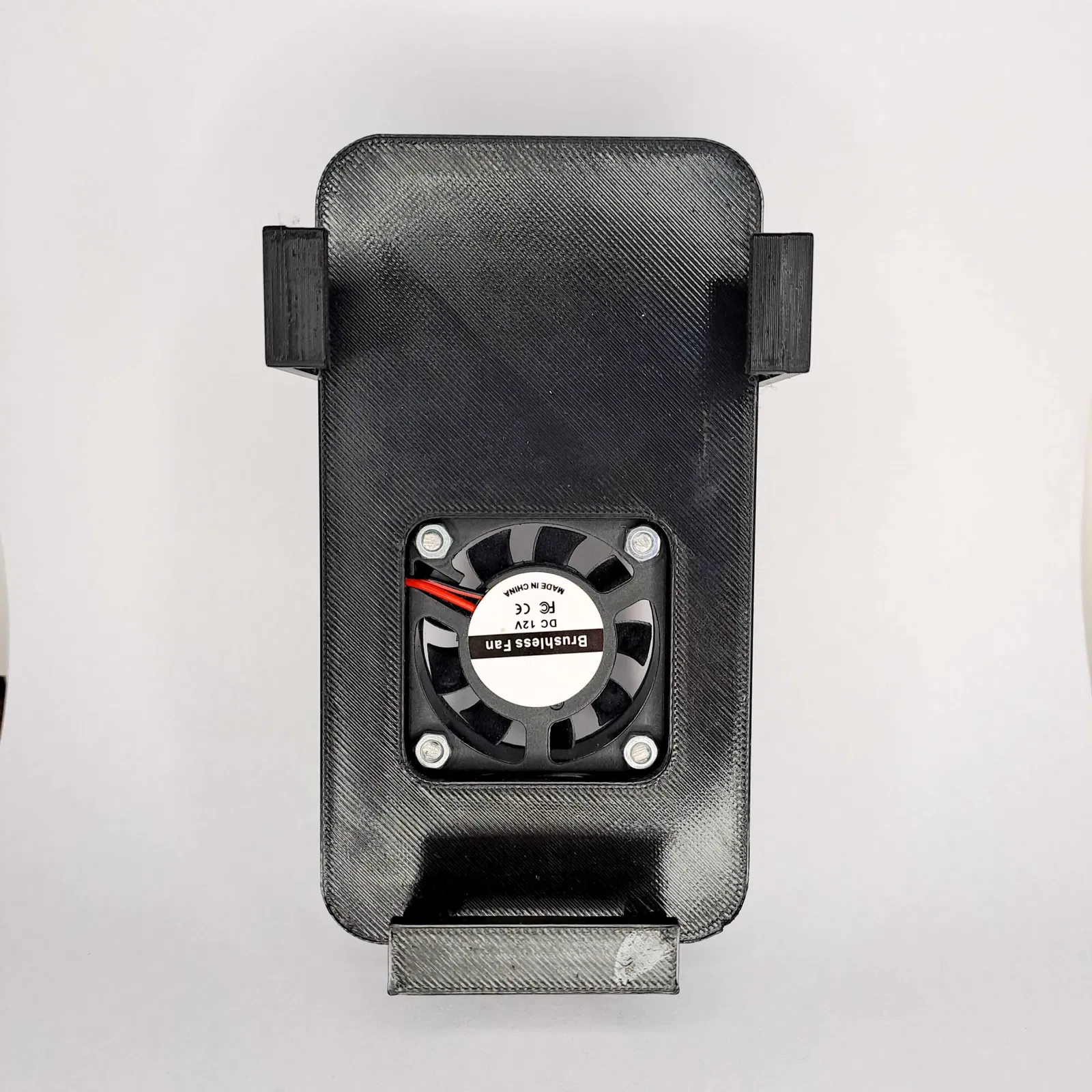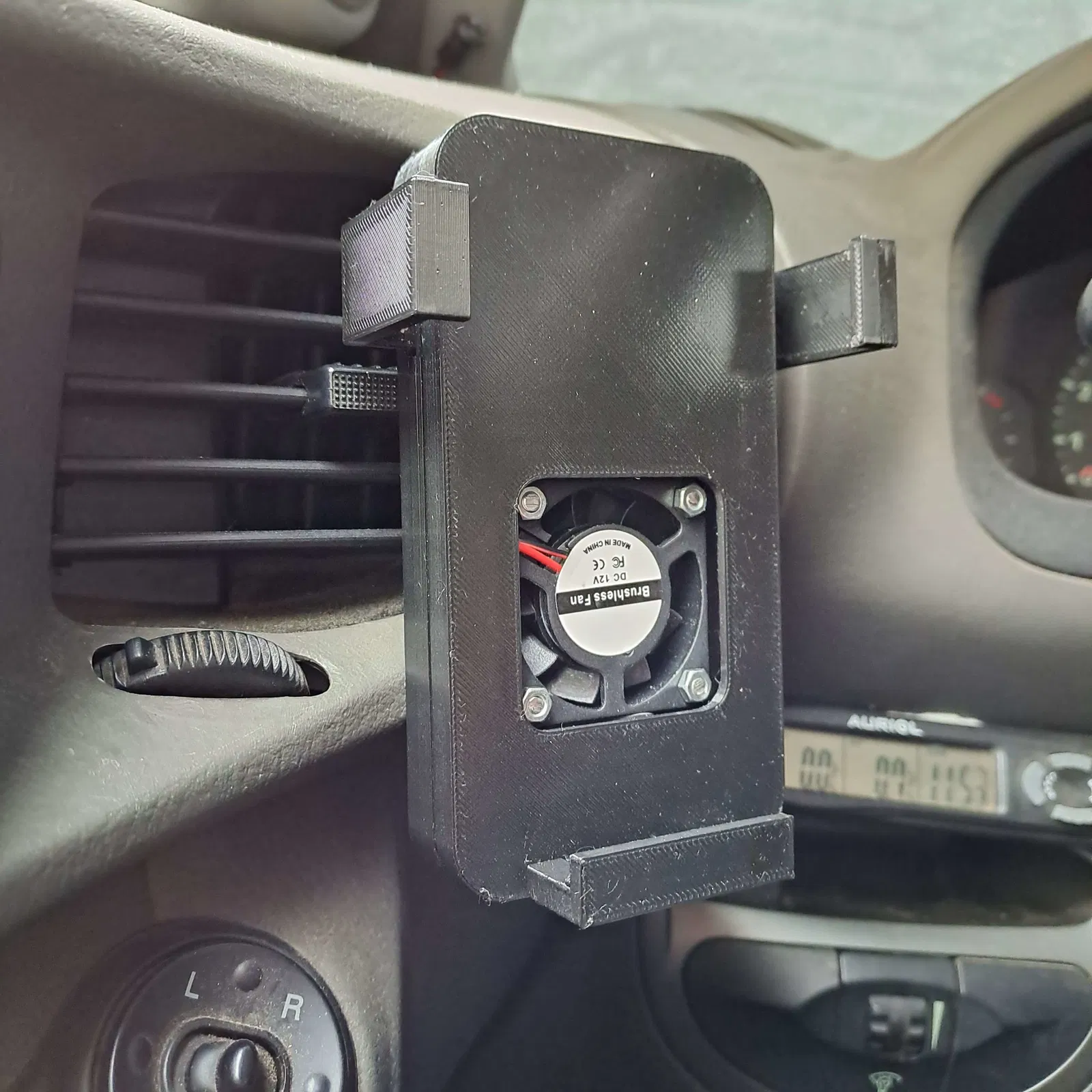 Đây là cái đế giữ điện thoại mới của mình, có tích hợp quạt nhỏ cho máy in 3D (40mm x 40mm) nè, vì mùa hè điện thoại mình nóng quá trời luôn. Cái này hữu ích cho mấy chiếc xe hơi không có máy lạnh ha. Bạn có thể tùy chỉnh độ rộng để vừa với điện thoại của mình.
