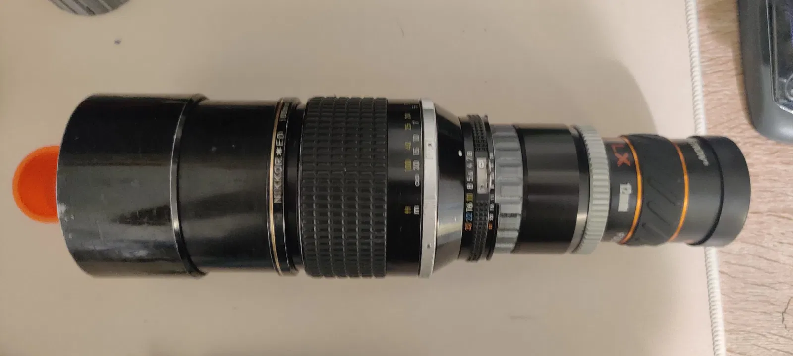 Cho phép bất kỳ ống kính camera gắn kết Nikon/Nikkor F nào được điều chỉnh để phù hợp với 1 3/8 "x 24TPI Kính thiên văn có ren.