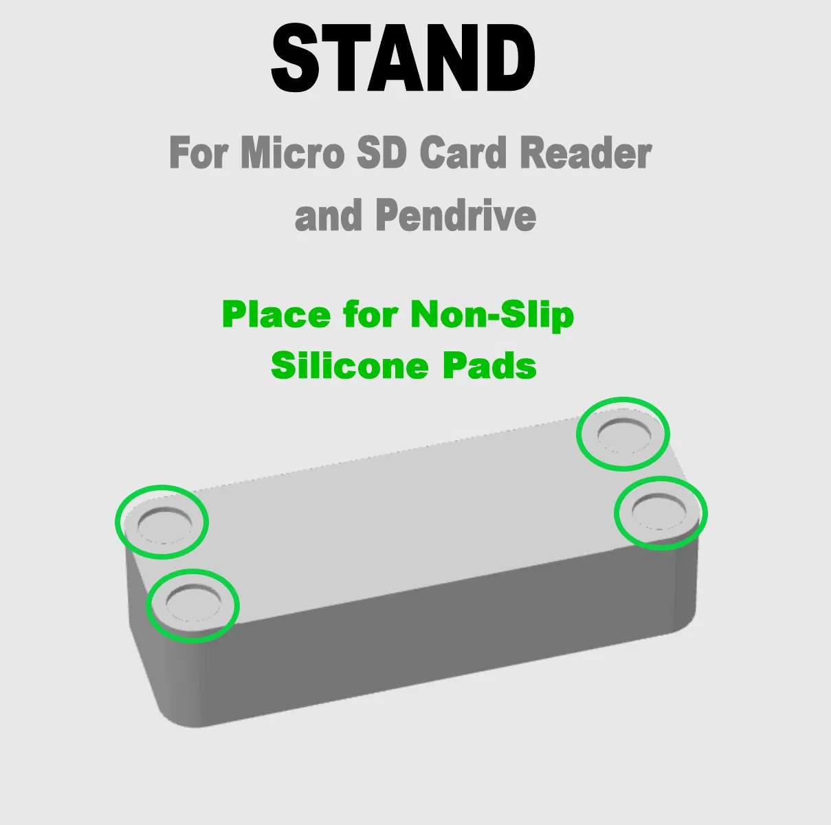 Mình có làm một cái đế để đựng đầu đọc thẻ nhớ Micro SD. Mình chia sẻ lại dự án này, biết đâu có ai đó cần dùng tới. Nó cũng có thể dùng cho USB nữa nha. Dưới đế có chỗ để 4 miếng lót chống trượt, đường kính tối đa là 8mm. Độ dày miếng lót mình xài là 1.5 - 2.5mm. Mấy cái này bạn có thể mua ở mấy cửa hàng DIY lớn hoặc cửa hàng phụ kiện nội thất, giá khoảng 1.50 euro cho 50 miếng. Dùng hay không dùng cũng được nha.