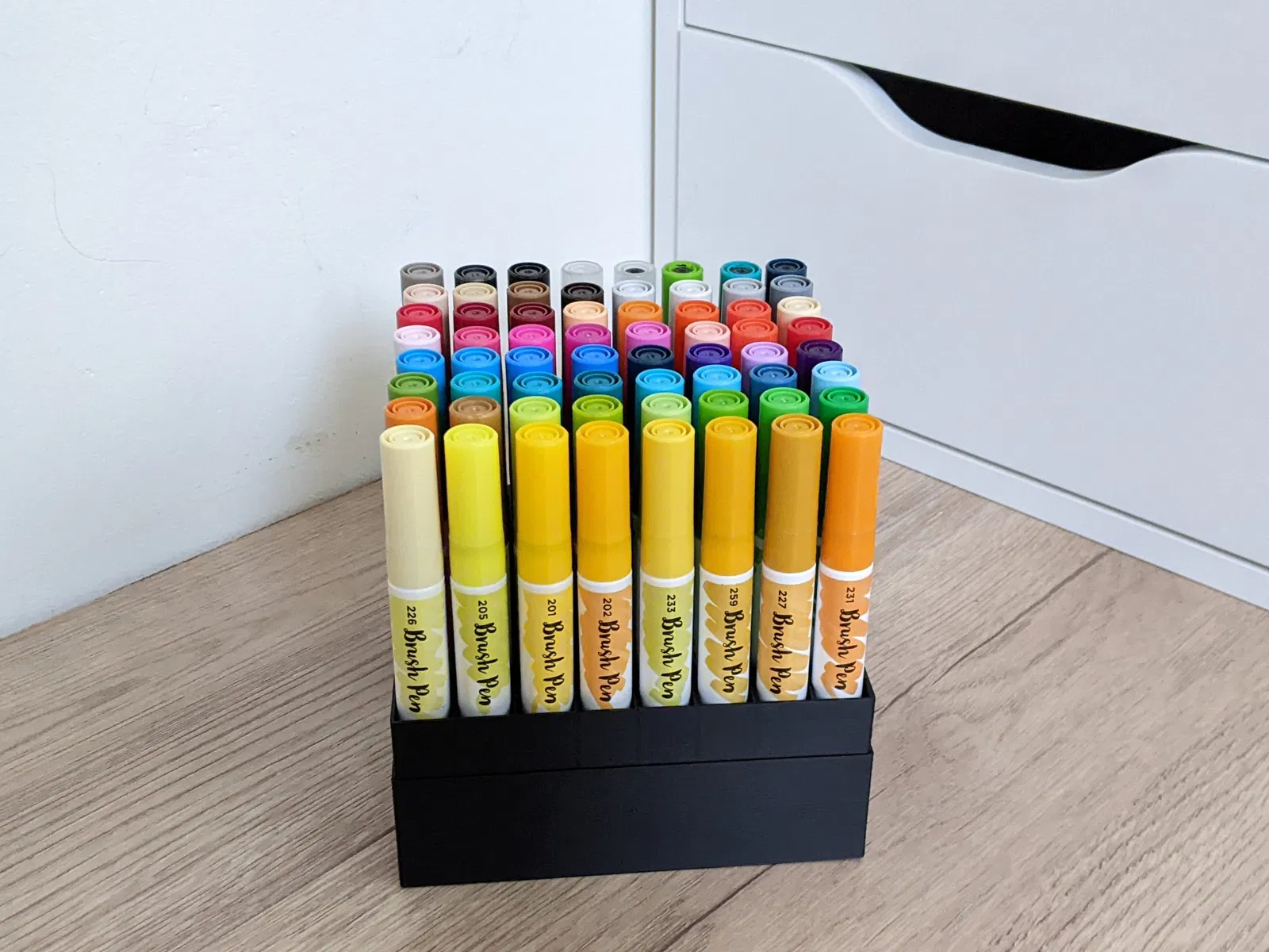 Kệ đựng 64 cây bút lông Ecoline, thiết kế thông minh với khoảng cách hợp lý giữa các cây bút giúp bạn dễ dàng lấy bút ra từ giữa, phù hợp cho bộ sưu tập đầy đủ.