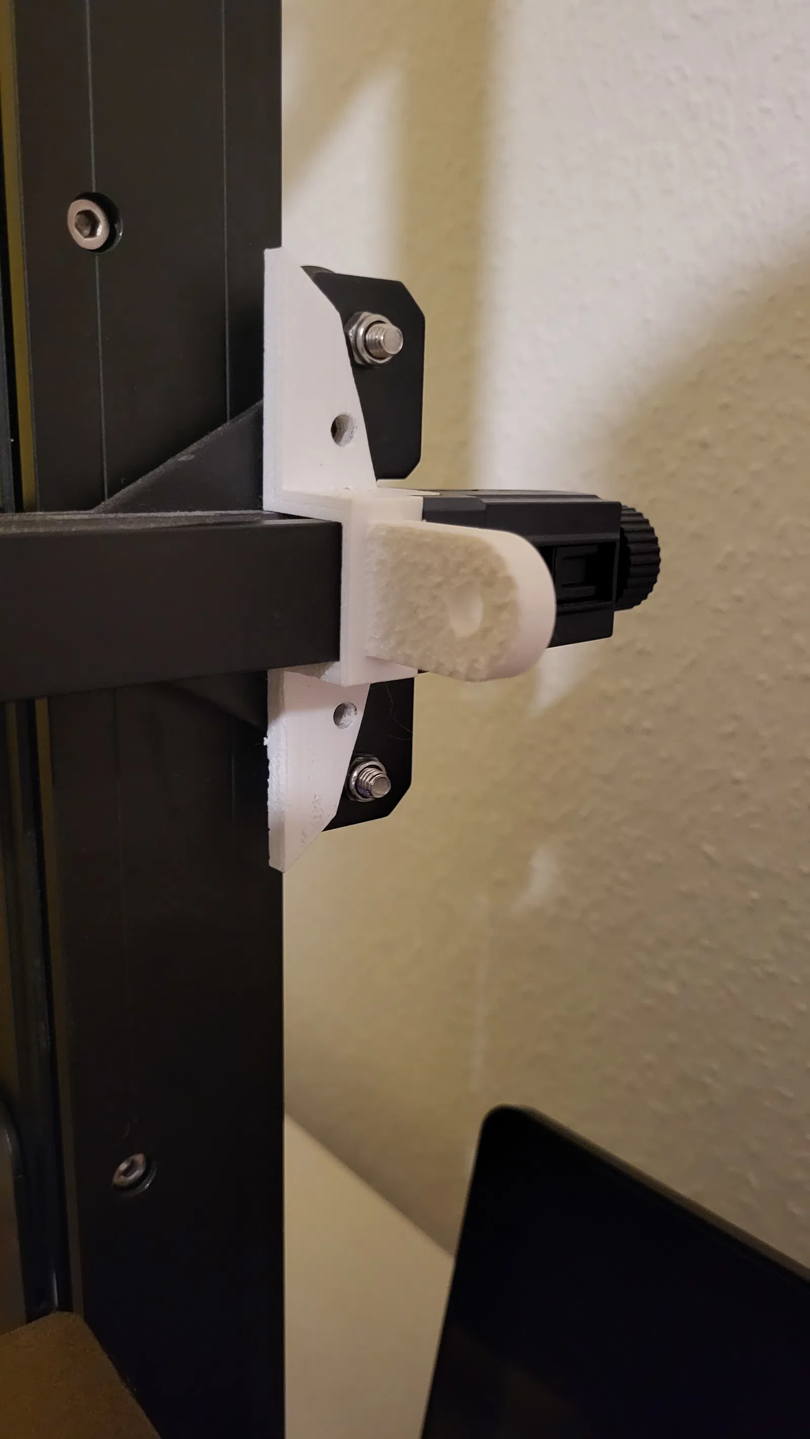 Bạn cần căn chỉnh mô hình cho phù hợp với mặt in, cần có support và 30% Infill. Tôi đề xuất in mẫu này bằng PETG. Sau khi in xong, bạn vặn phần này vào phía bên phải của trục X. Việc siết chặt ốc và đai ốc khá là khó khăn vì vướng các con lăn của trục X.