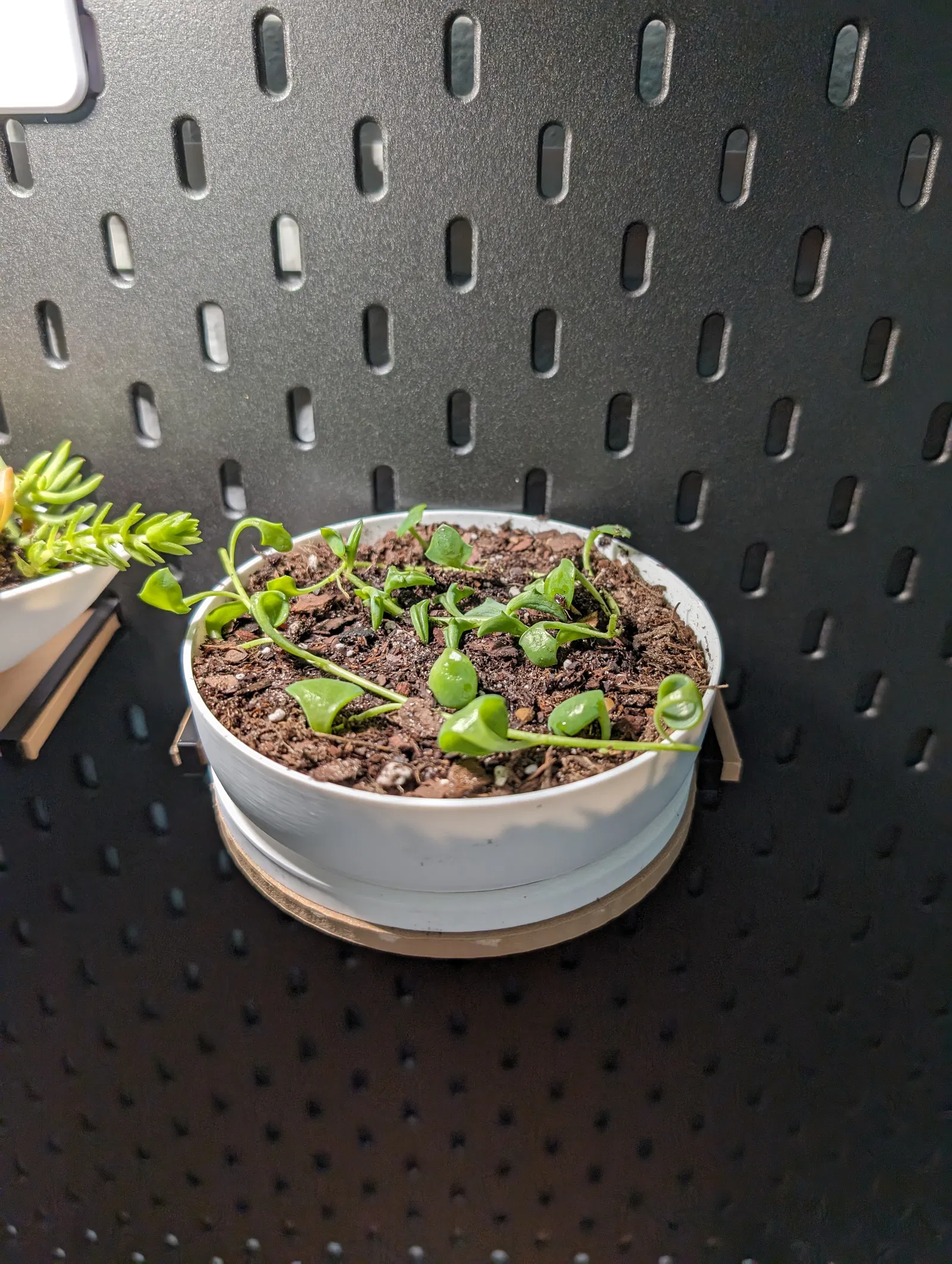 Chế lại kệ Skadis của Mima19, làm thành hình bán nguyệt để vừa chậu cây tròn 11cm và có thêm chân đỡ chắc chắn. Thích hợp cho các bạn thích tùy biến đồ dùng IKEA.
