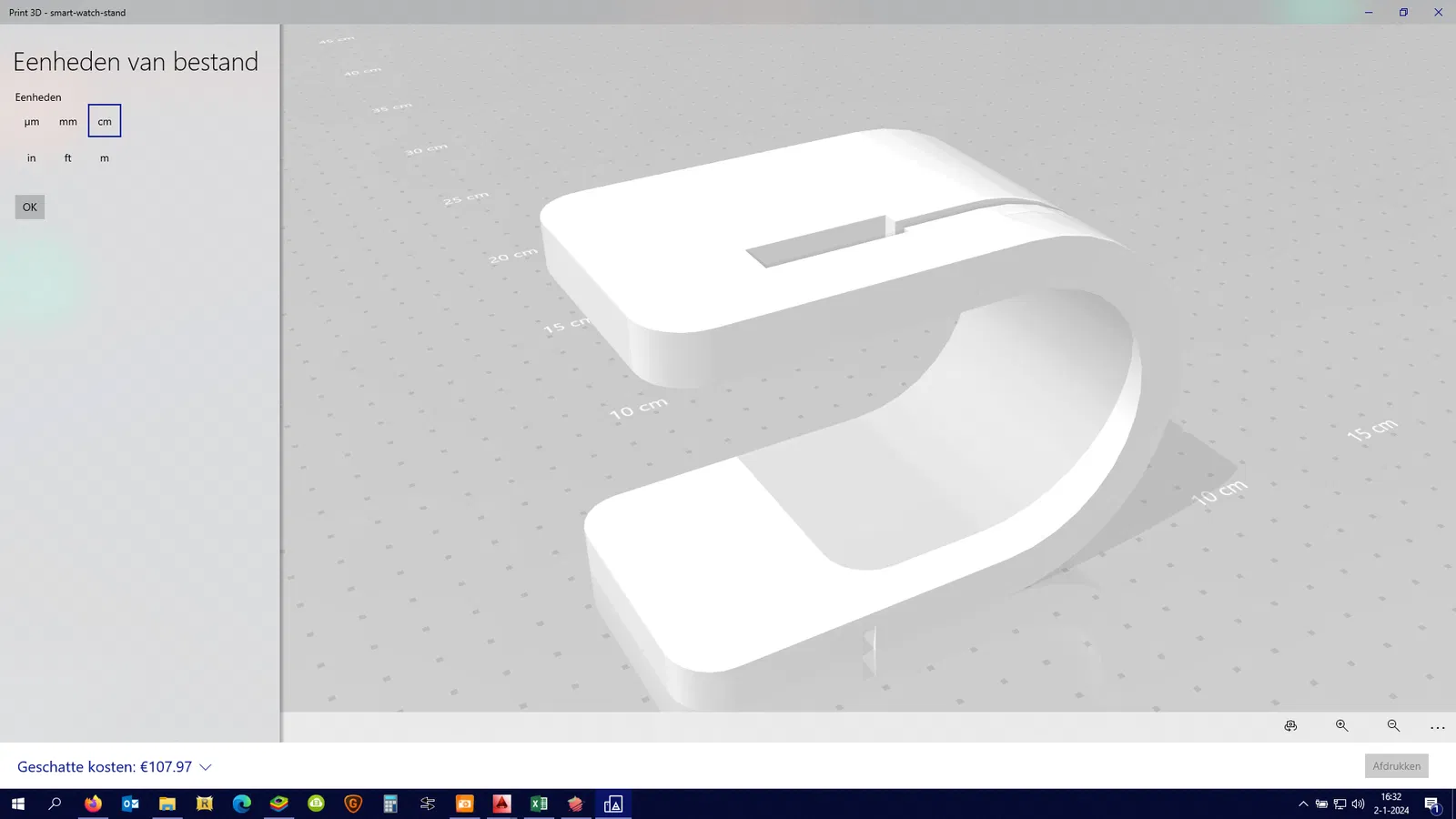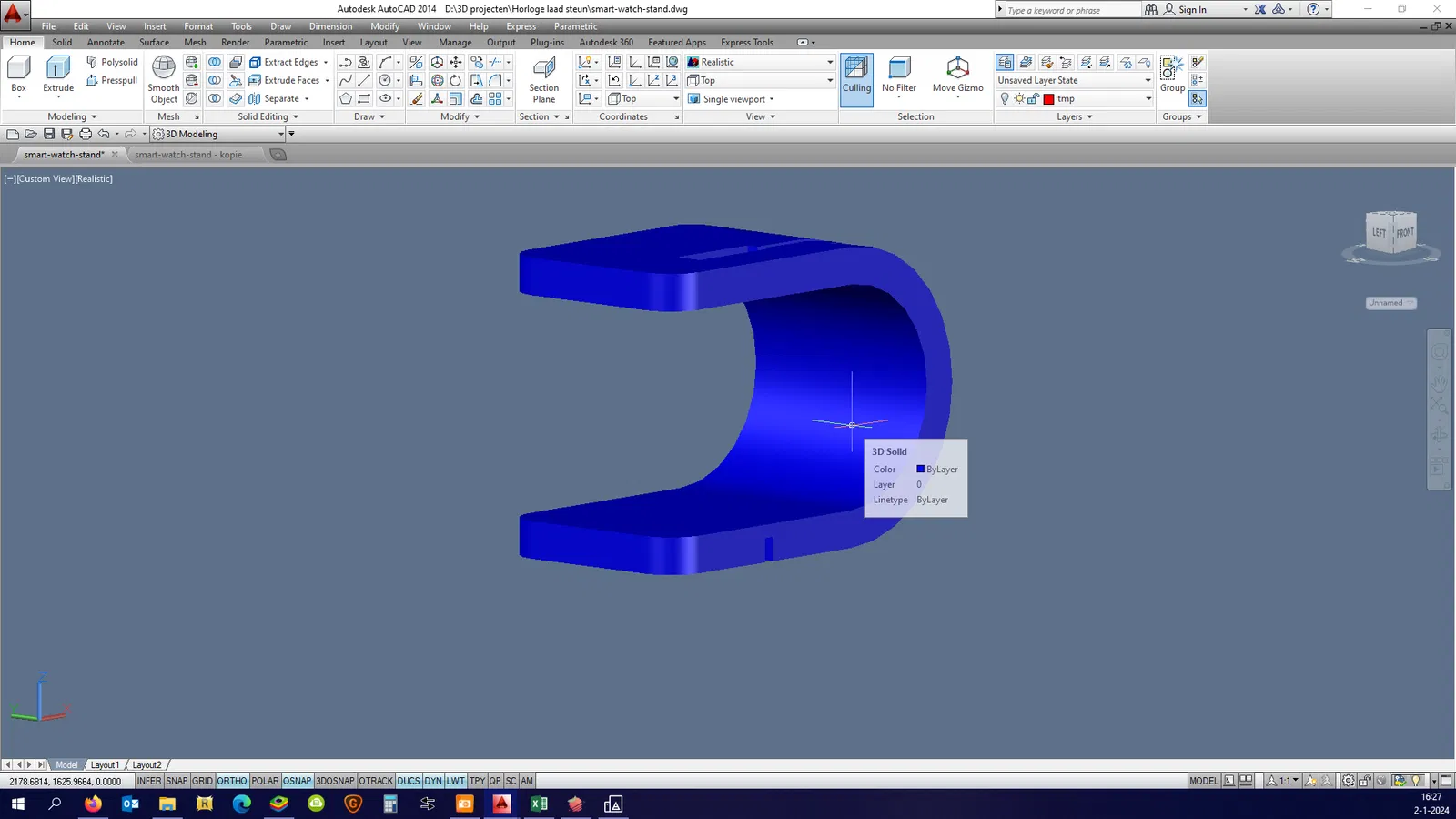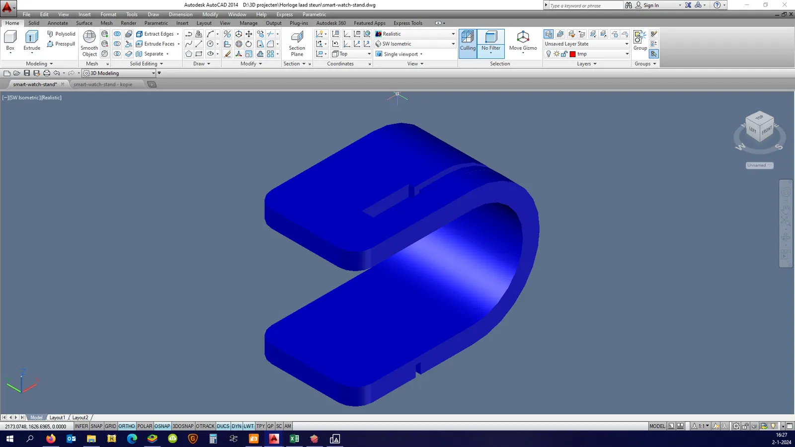 Mình làm cái đế sạc này dựa trên một mẫu cũ là 305963-smart-watch-charging-stand-1, do chỗ cắm cáp sạc nó không khớp với mấy cái đồng hồ mình đang có nên mình chỉnh lại xíu.