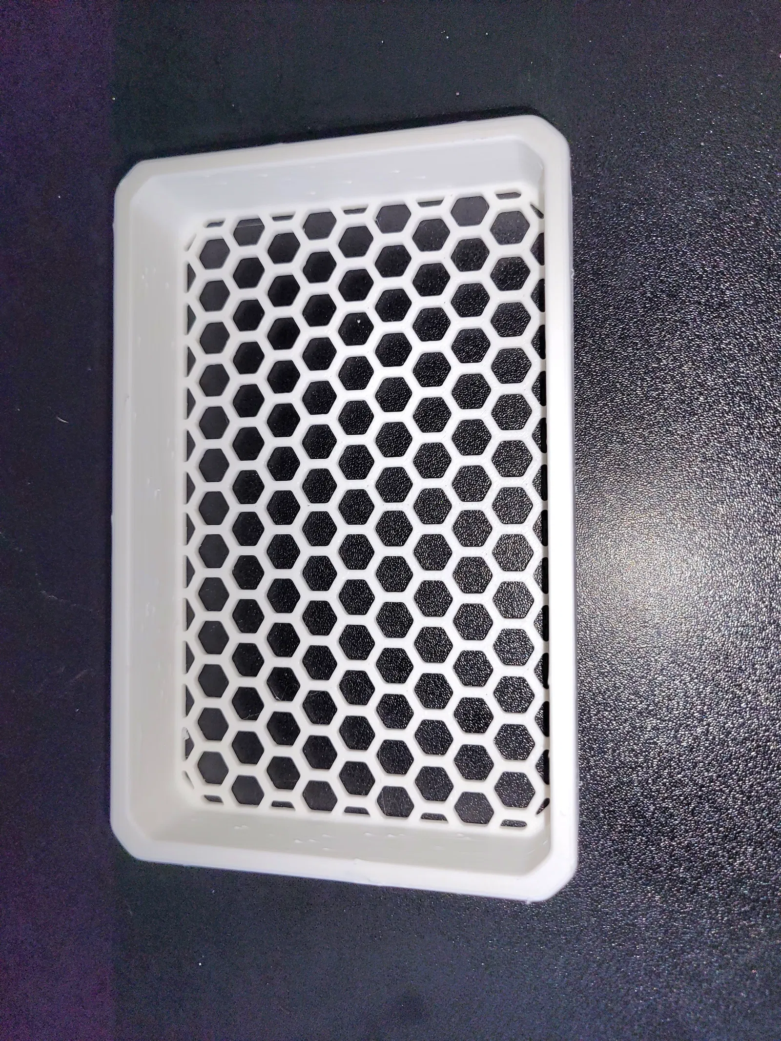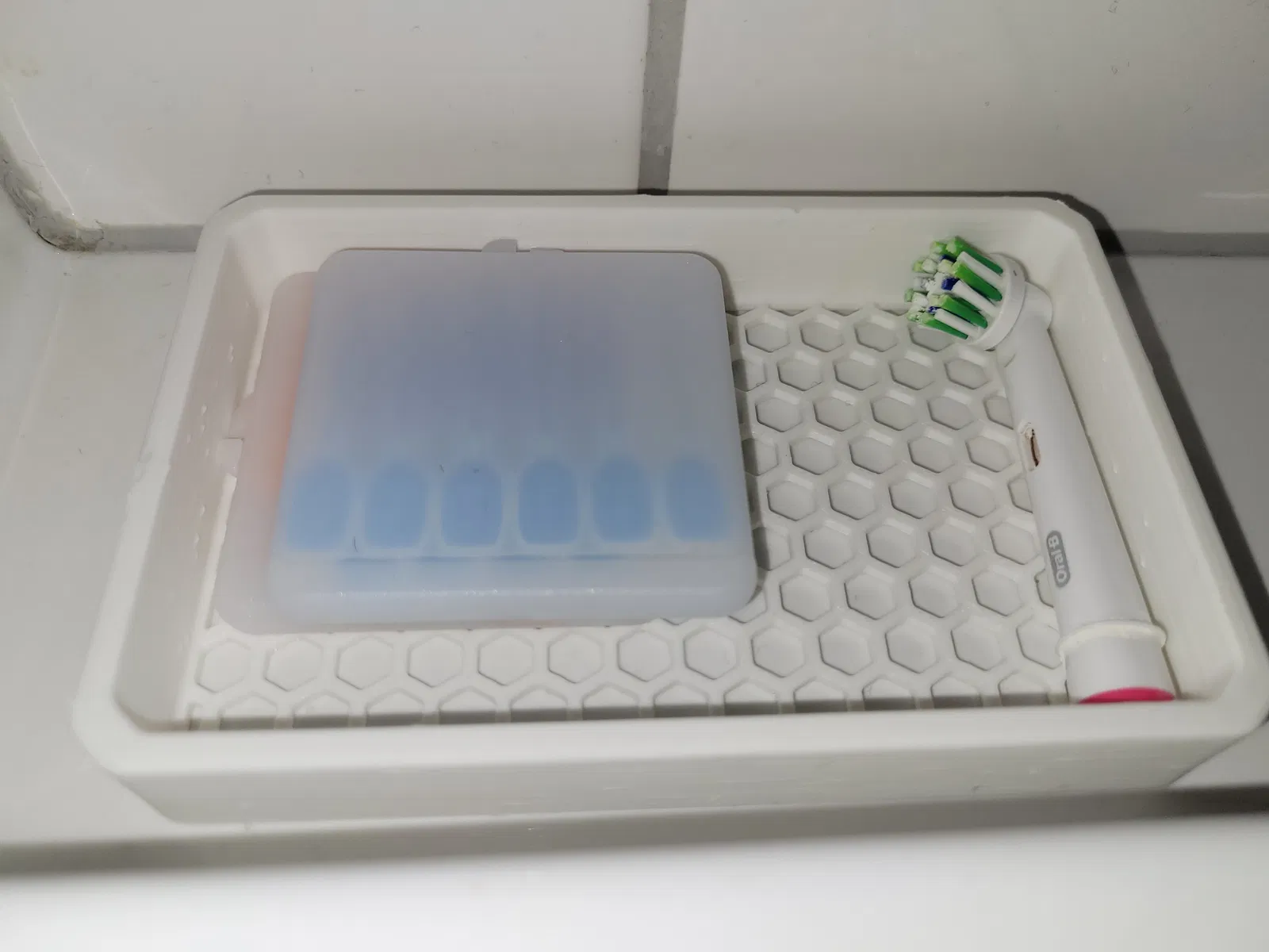 Chỉ là một cái khay đơn giản với mấy cái bo tròn đẹp, vát cạnh và đáy hình lục giác, bạn có thể dùng đế dán để treo nó lên tường nha