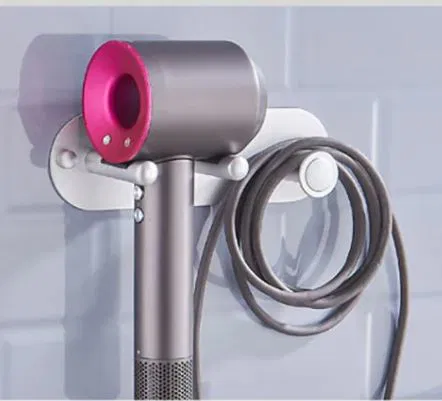 Giá đỡ máy sấy tóc, có chỗ để dây cáp và nút bịt lỗ ốc. Phụ kiện tiện lợi cho phòng tắm, giúp bạn sắp xếp gọn gàng máy sấy và dây cáp, giữ cho không gian luôn sạch sẽ.
