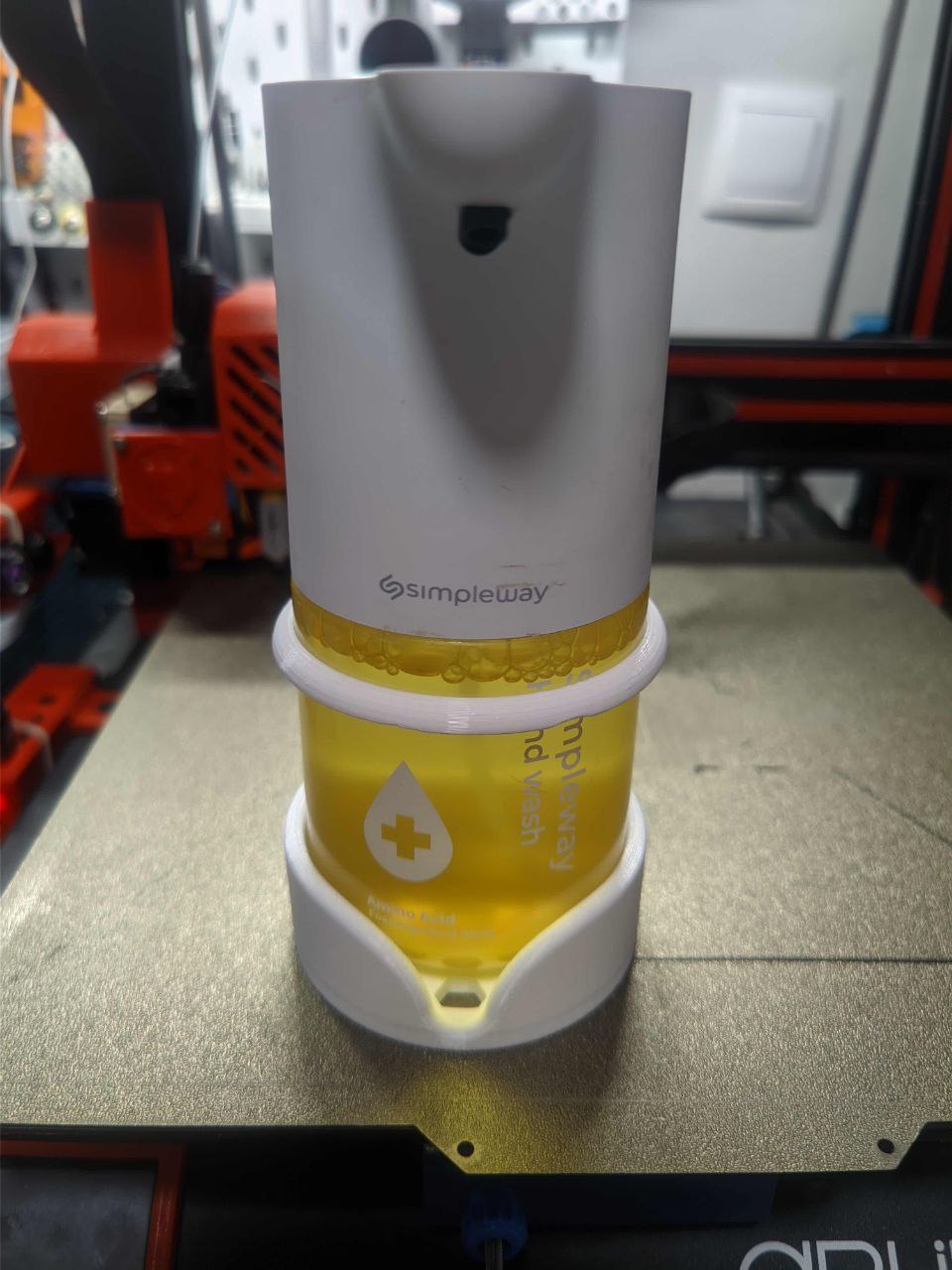 1º A test ring that is recommended to print first. The ring has to enter the dispenser tightly, as it will support it without any glue. In the event that the ring does not enter or is too loose, resize it, print and re-test. Once the ring between adjusted copy the results to the part of the holder I have printed it.