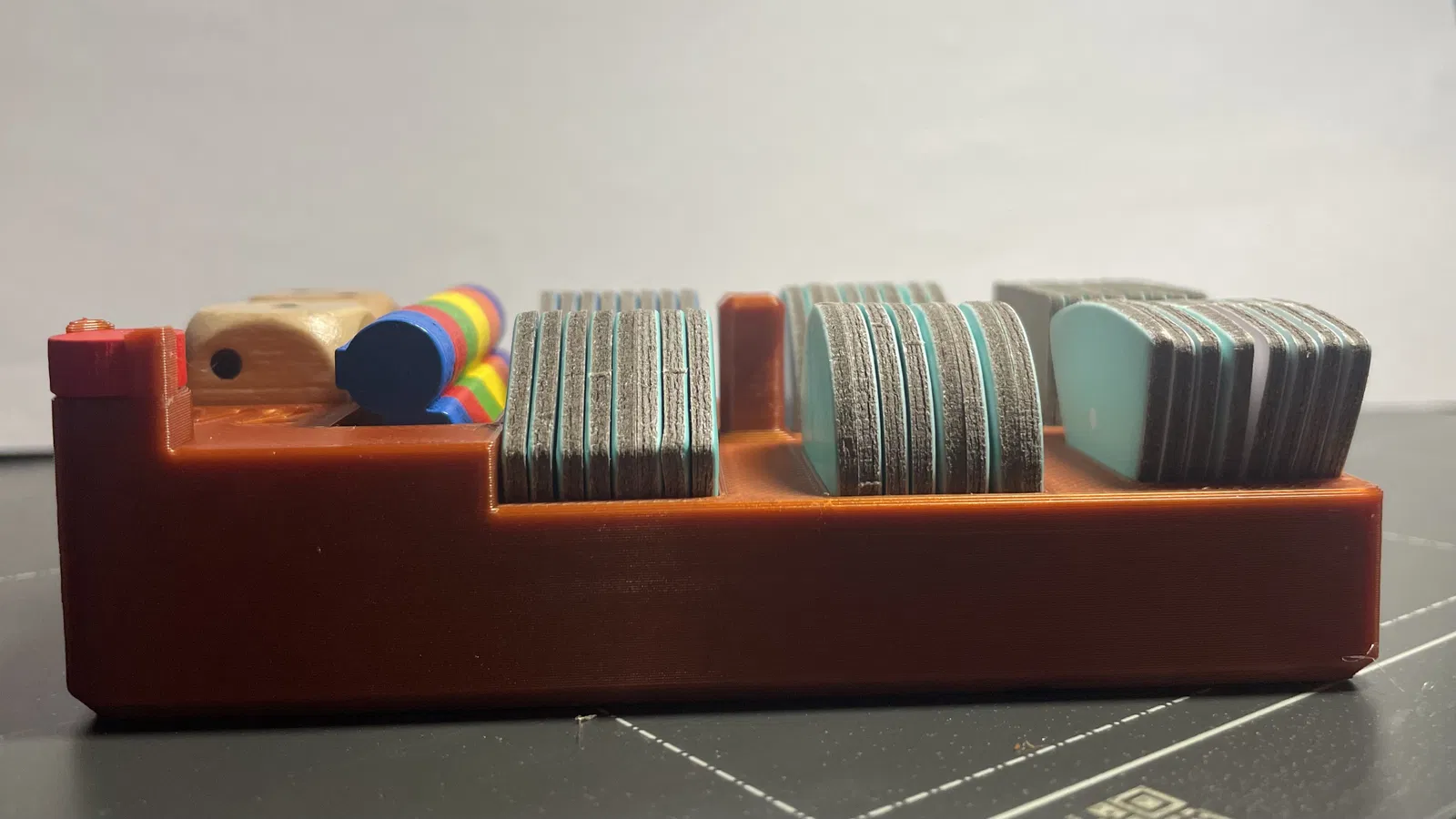 Insert hộp đựng 'Cuộc phiêu lưu biển sâu' được thiết kế tối ưu với tay cầm, vát cạnh, và các ngăn riêng cho từng loại đá, đảm bảo mọi thứ gọn gàng và dễ lấy. Mọi bộ phận đều nằm trên cùng một mặt phẳng, chống xáo trộn hiệu quả.