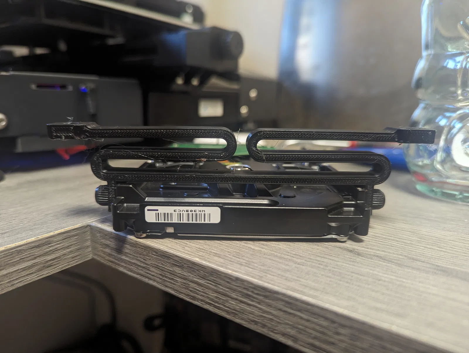 Giá đỡ ổ cứng có thêm tí lò xo cho êm ái, in 2 cái cho mỗi ổ nha. Mấy cái cho ổ 2.5" thì làm hết bởi KUDDLKAT Còn cái cho ổ 3.5" thì tui tự làm, mẫu này xài ốc vặn tay được luôn nha.