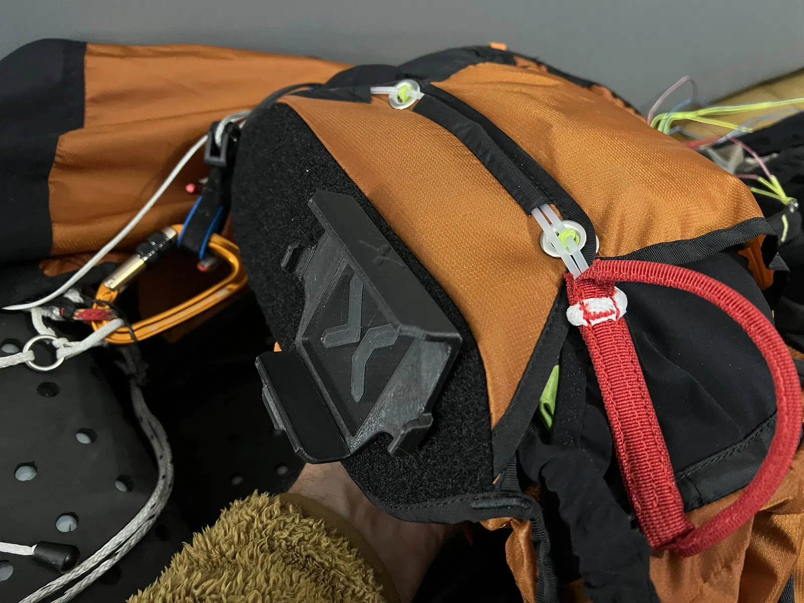 Kẹp hỗ trợ XCT Maxx 1/2, cho phép bạn gắn thiết bị úp màn hình xuống để tránh hư hại khi cất trong ba lô. Phiên bản 2.4 có rãnh sâu hơn cho velcro và thêm gờ để dễ tháo lắp.