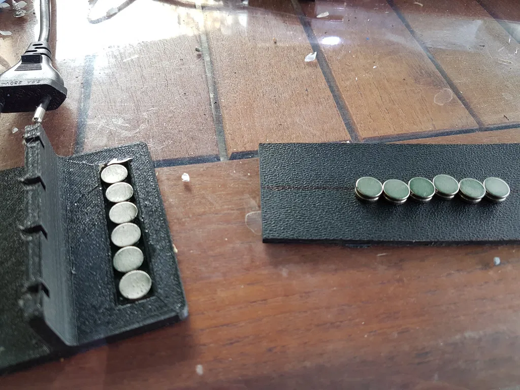 Cho 4 cảm biến. Mua cái này hơi mắc với tui. Tui đã dùng nam châm Neodym. Mỗi cái 2 cái chồng lên nhau, 6 cái để kế bên nhau. Tui đã dán mấy cái này bằng keo 2 thành phần (2K). Nhớ dán nam châm đúng chiều nha.