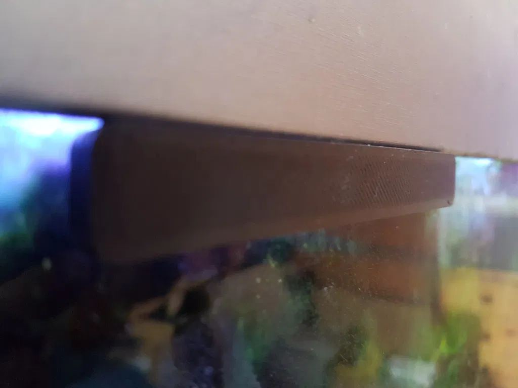 Với tôi, nó hoạt động qua một tấm kính dày 18mm. Tôi đã in bằng PETG. PLA có lẽ không phù hợp cho bể cá. Lòng trong gần như tổ ong 5% cho hình chữ nhật. 35% cho giá đỡ.