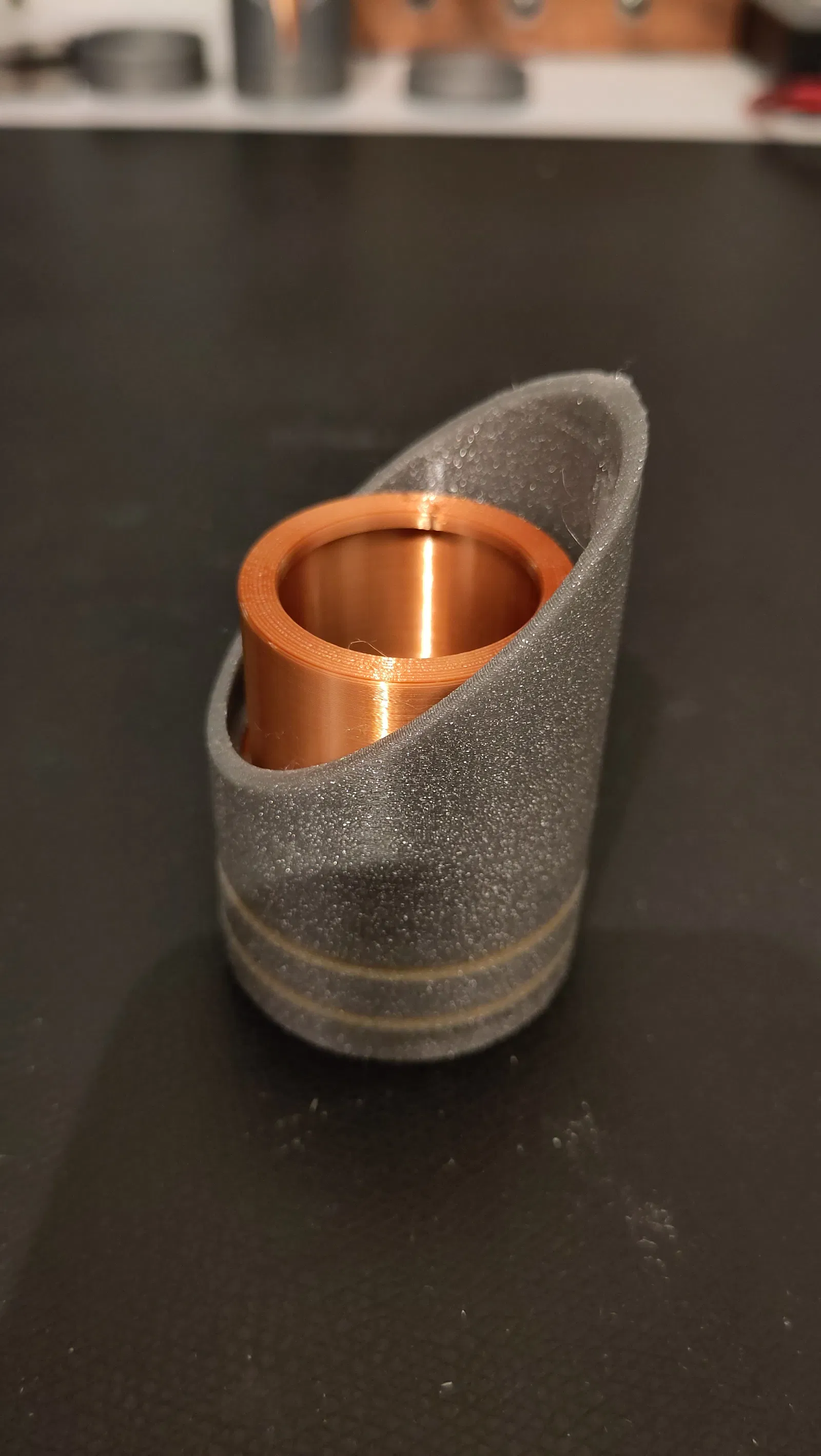 In phần lõi chuôi (pommel core) với nhiệt độ bàn in thấp hoặc tắt hẳn đi. Ở nhiệt độ cao, phần tường nghiêng có thể sẽ không in đẹp.