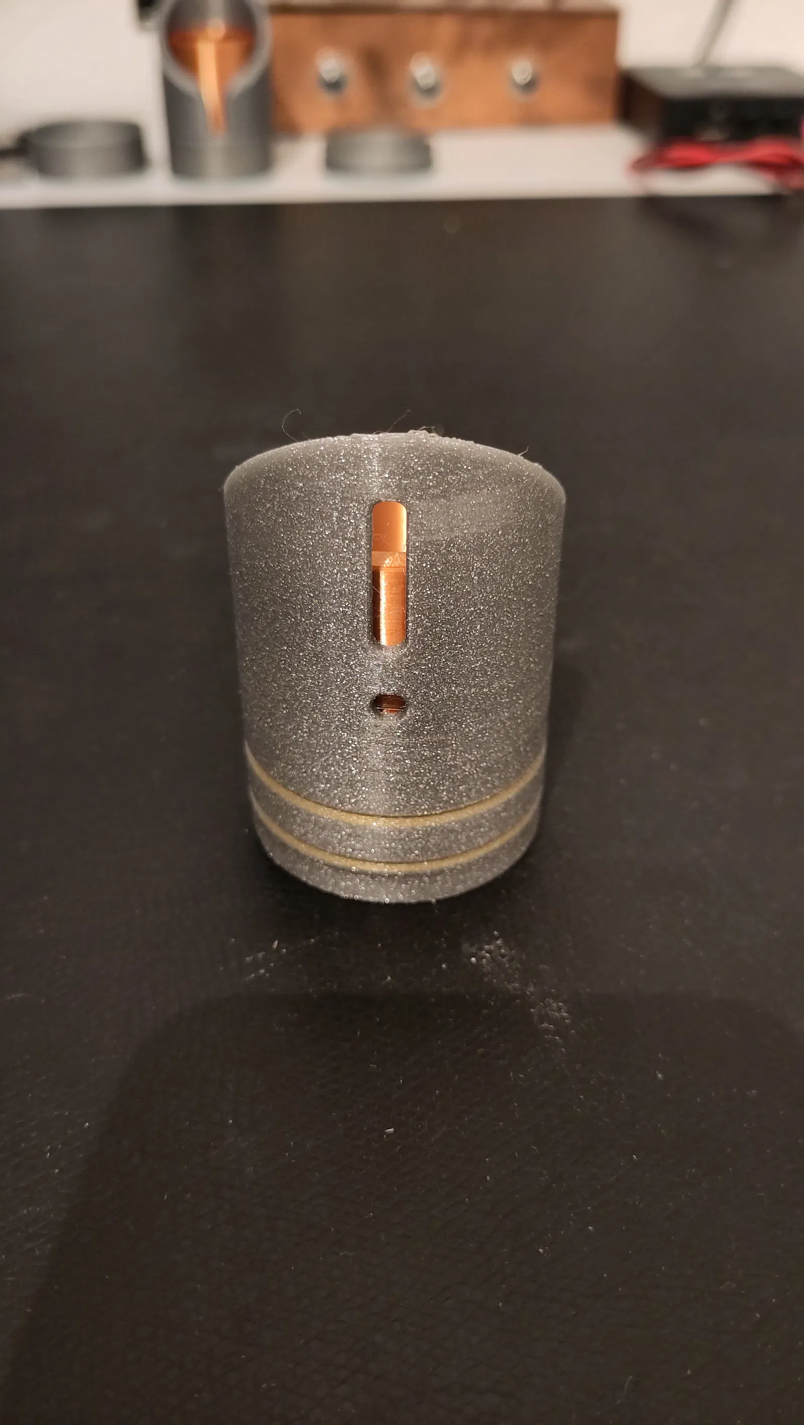Tui dự định dùng món đồ này làm đèn trang trí treo tường nên tui cần một cái lỗ trên phần chuôi để luồn dây cáp USB-C qua.