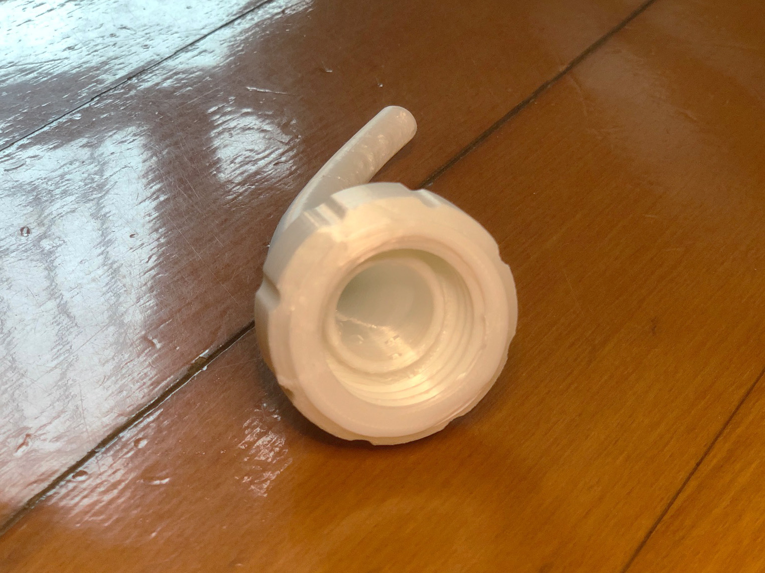 Tui có bổ sung thêm phiên bản có ren xoáy để gắn trực tiếp cái vòi vô chai nước luôn. Để giải quyết vụ rò rỉ nước ở phần ren, tui có làm thêm một cái ống hình nón ngắn ở bên trong phần nắp của vòi. Cái ống ngắn này nhét vô chai nước và tạo độ khít để nước không bị rò rỉ ra ngoài phần ren. Tuy nhiên, tui thấy kiểu ren trên mấy chai nước của mỗi hãng mỗi khác. Nên cái giải pháp này có thể không áp dụng được hết cho tất cả các loại chai nước đâu nha. Với một số hãng chai nước, có thể bị rò rỉ nước nhẹ ở phần ren đó. Trong trường hợp đó, bạn có thể dùng cái thiết kế mà tận dụng cái nắp zin của chai nước đó nha.