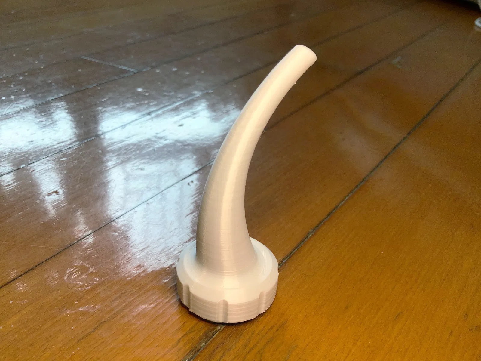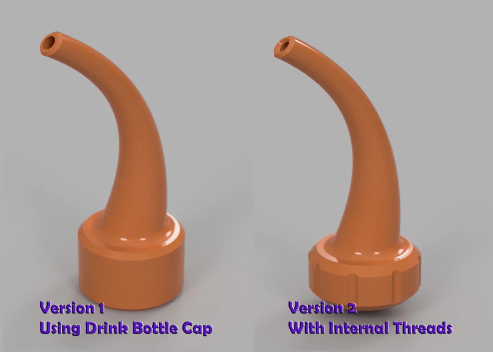 Tui có bổ sung thêm phiên bản có ren xoáy để gắn trực tiếp cái vòi vô chai nước luôn. Để giải quyết vụ rò rỉ nước ở phần ren, tui có làm thêm một cái ống hình nón ngắn ở bên trong phần nắp của vòi. Cái ống ngắn này nhét vô chai nước và tạo độ khít để nước không bị rò rỉ ra ngoài phần ren. Tuy nhiên, tui thấy kiểu ren trên mấy chai nước của mỗi hãng mỗi khác. Nên cái giải pháp này có thể không áp dụng được hết cho tất cả các loại chai nước đâu nha. Với một số hãng chai nước, có thể bị rò rỉ nước nhẹ ở phần ren đó. Trong trường hợp đó, bạn có thể dùng cái thiết kế mà tận dụng cái nắp zin của chai nước đó nha.