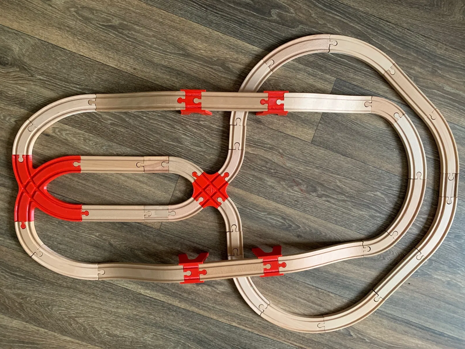 Bộ phận này in ra từ nhựa PETG màu đỏ lửa Nebula, với 3 lớp vỏ và 60% ruột. Đã thử nghiệm 4 tháng, cấu trúc vẫn bền bỉ, chịu được cả sự nghịch ngợm của trẻ nhỏ, cho phép tạo ra nhiều biến thể lắp ráp đường ray mới.