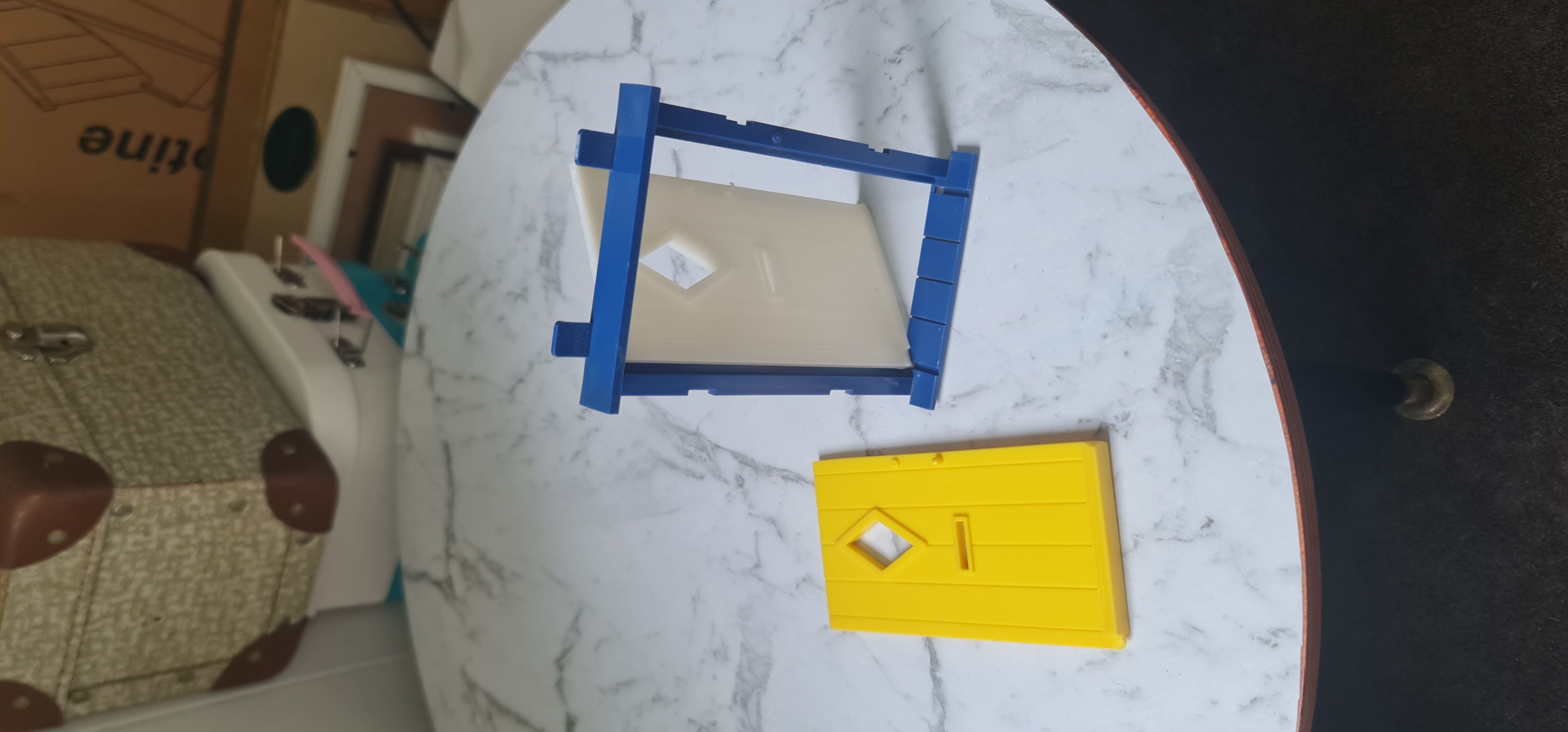 Đây là cánh cửa tui tự thiết kế trên Tinker-cad, dựa trên cánh cửa gốc của nhà búp bê thập niên 60-70 bị gãy 2 bản lề. Tui kiếm hoài không có cái nào vừa ý, nên thử tự làm một cái.