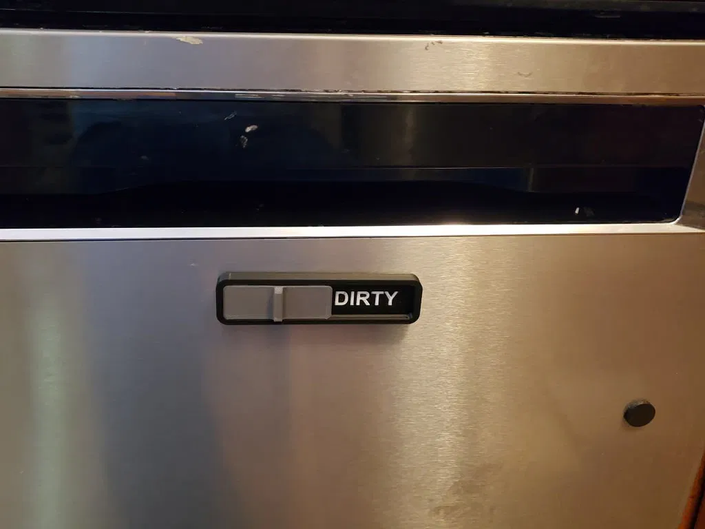 Đây là bản in hai hoặc một máy đùn (2 màu) dành cho bộ chỉ báo sạch/bẩn của máy rửa chén. Nếu bạn chỉ có một màu sợi nhựa, tôi khuyên bạn nên dùng bút Sharpie hoặc phương pháp tô màu khác để tô chữ.