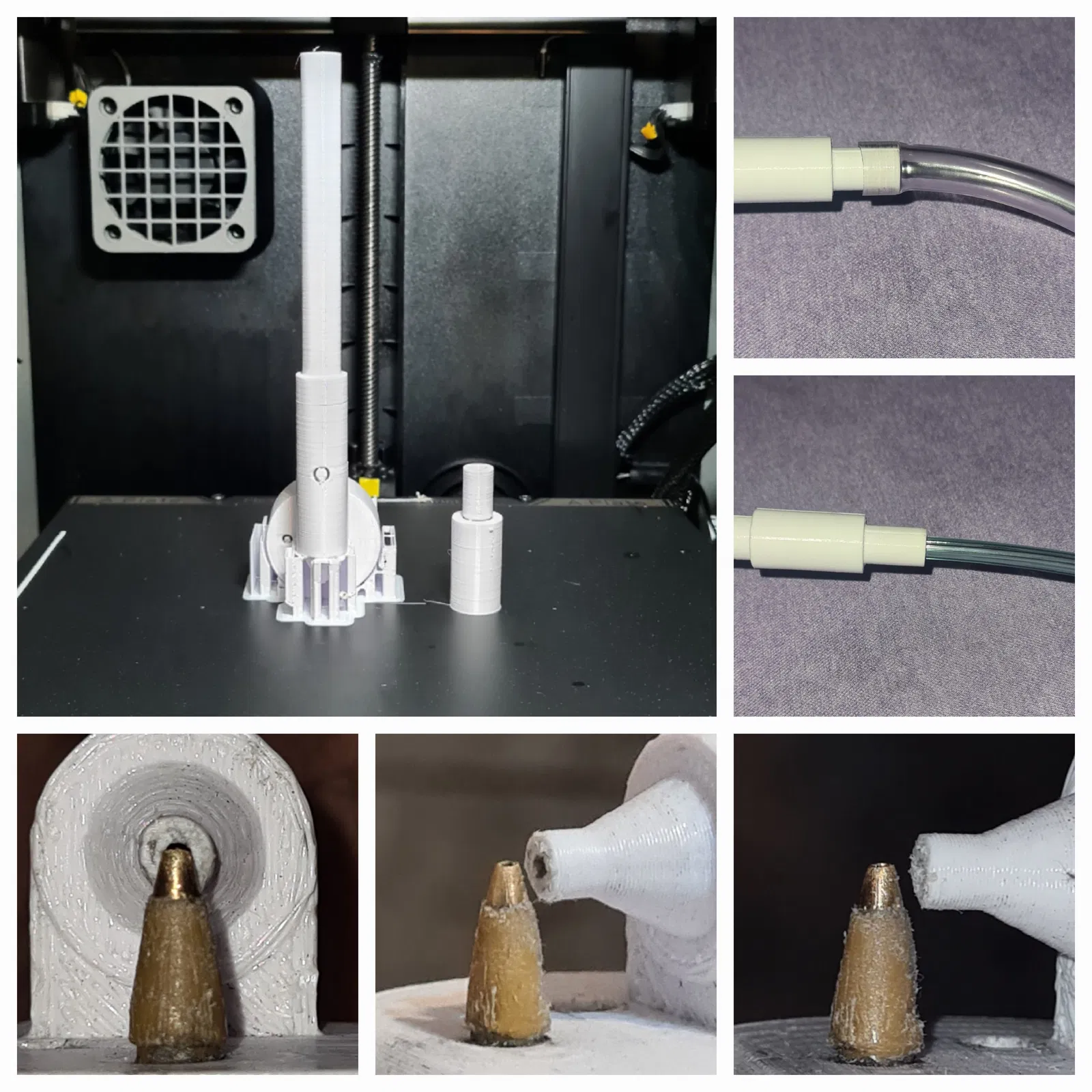 Cái mẫu thử nghiệm Aerógrafo này làm đơn giản lắm (không phải là cây aerógrafo chuyên nghiệp đâu haha). Nó giúp ích cho mấy vụ sơn phết nhỏ nhỏ. Muốn xài thì bạn cần có máy nén khí trực tiếp hoặc bình khí, còn nếu có cái mô-tơ tủ lạnh cũ là xài ngon lành như tui nè haha. Lắp ráp thì cứ làm theo từng bước trong mấy cái gif tui để sẵn nha. Bạn sẽ cần một cái hũ sơn ACRILEX rỗng, một cây bút BIC, hai cái mũi khoét và một cây kim. Lúc in cái aerógrafo của bạn á, nhớ in nó đứng lên như trong hình để nó ra hình dạng chuẩn nha (lưu ý là KHÔNG đặt support bên trong cái béc phun á để tránh bị nghẹt) bạn phải cẩn thận chỗ này lắm đó. Lấy cái mũi khoét nhỏ nhét vô lỗ ở cái chóp aerógrafo để khoét rộng ra tí xíu, còn cái mũi khoét lớn hơn thì để khoét mấy cái lỗ trên nắp đúng vị trí rồi dán nó vô luôn. Còn cây kim thì dùng để lấy viên bi ra khỏi đầu cây bút BIC nha, còn cái ống ruột bút thì cắt một khúc vừa đủ để nó chạm tới đáy hũ sơn, nhớ cắt vát ở đầu ống để lúc xài không bị nghẹt mực nha. Đầu cây bút phải nằm ngay giữa cái béc phun của aerógrafo á. Nếu bạn xài mô-tơ tủ lạnh giống tui thì tui khuyên nên xài ống dây máy xông mũi hoặc ống dây để đo thăng bằng (cái ống mà mấy chú thợ hồ hay xài á) là xài ngon lành liền. Cuối cùng, trước khi bắt đầu sơn phết á, nhớ pha loãng sơn ra thiệt lỏng nha, chứ sơn mà đặc quá là không có xài được đâu! Nhớ nha, đây là mẫu thử nghiệm có thể chỉnh sửa thêm tí cho nó ngon hơn nữa. Tui in bằng sợi PLA, nhưng mà thử với mấy loại sợi khác xem sao cũng không thừa đâu. Cảm ơn mọi người nhiều, mong là cái dự án đơn giản này giúp ích được cho mấy bạn nha ;D