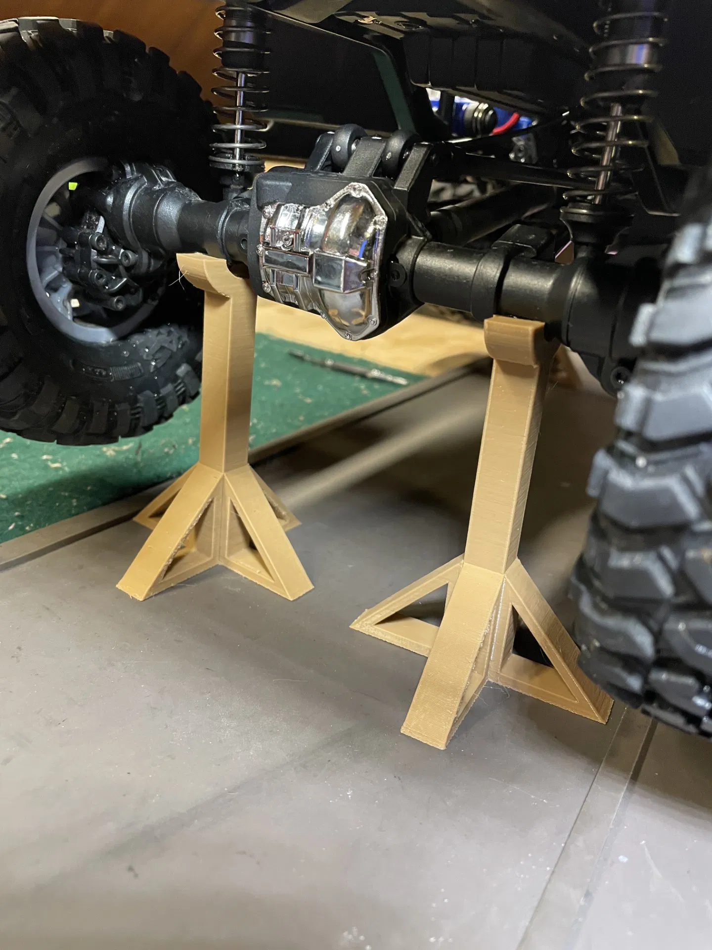 Chân chống xe RC đơn giản, tách rời giúp bạn dễ dàng đặt ở nhiều vị trí dưới xe. Được thiết kế cho Traxxas TRX4, in bằng PLA với độ đặc 50%. Độ bền tùy thuộc vào trọng lượng xe của bạn.