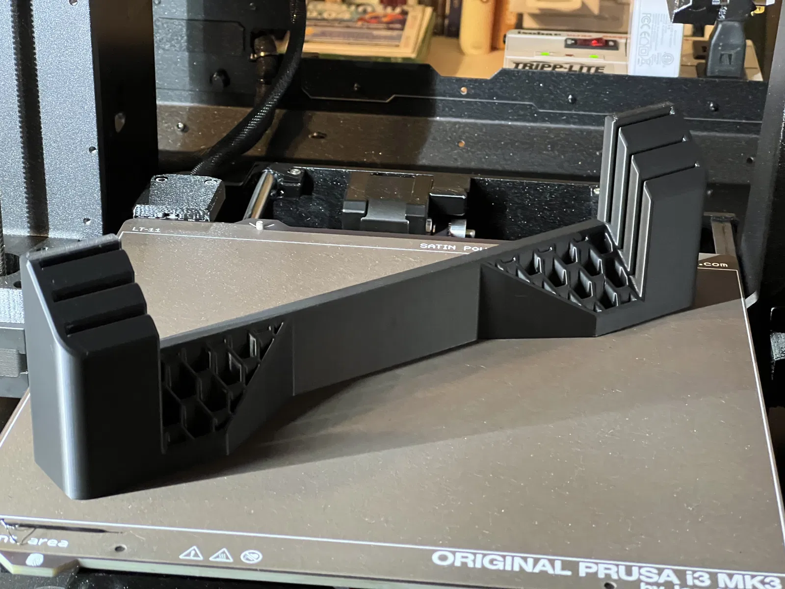 Đây là một bản remix của giá đỡ tấm in tuyệt vời, được thiết kế cẩn thận bởi Waldmops. Phiên bản này đã loại bỏ phần giữa của họa tiết lục giác và bo tròn hai góc ngoài. Nhìn chung, những thay đổi này đã giúp giảm thời gian in của tôi khoảng ~2 giờ.
