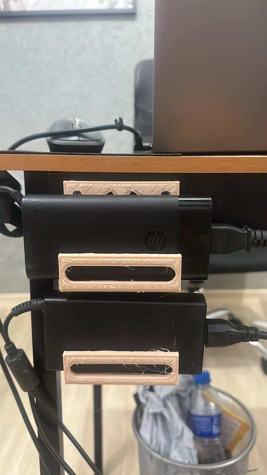 Giá đỡ sạc laptop nhỏ gọn, đa năng, có thể để vừa hai cục sạc cùng lúc. Có lỗ bắt vít M4 để gắn lên tường, giúp bàn làm việc gọn gàng hơn. Thiết kế tối ưu vật liệu, in nhanh và dễ dàng.