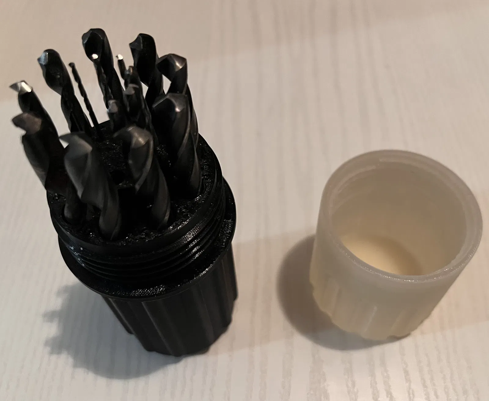 Cái hộp đựng mũi khoan của tui bị bể, nên tui đi kiếm cái khác để in 3D. Tui tìm được cái hộp đựng mũi khoan hình trụ của Dagongar, tui thấy cũng được.
