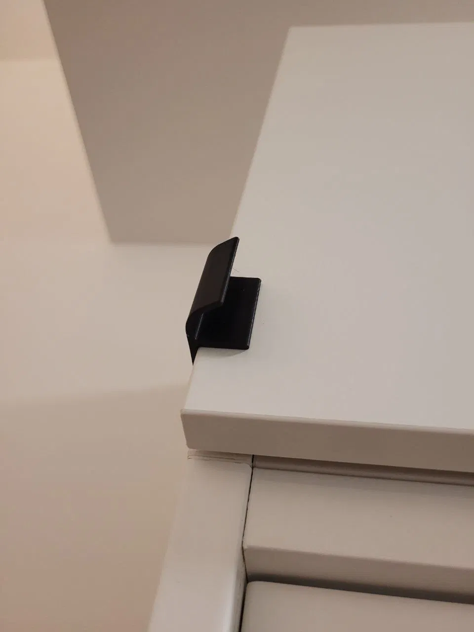 Mẫu tay nắm cửa này cho các loại tủ, ngăn kéo của Ikea (dày 16.5mm) như Platsa, Pax, Enhet, Kallax. Gắn vào cực kỳ dễ dàng bằng cách kẹp vào, không cần dùng bất kỳ con ốc nào. Có thể tùy chỉnh chiều dài dễ dàng bằng phần mềm slicing.