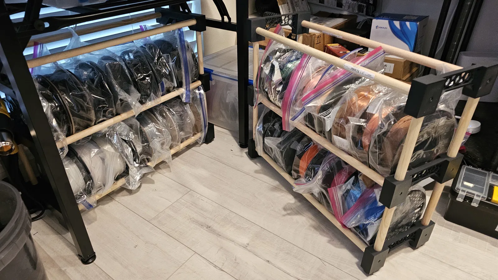 Mệt mỏi vì lục lọi hộp đựng filament? Tui đã thiết kế kệ module "Modular Spool Rack" này, có thể tùy chỉnh kích thước, dễ dàng xếp chồng hoặc kéo dài. Dùng cho thanh gỗ ¾ inch, có tùy chọn bánh xe. Có nhiều bản cập nhật với các file STL, 3MF, STEP mới nhất cho nhu cầu in khác nhau.