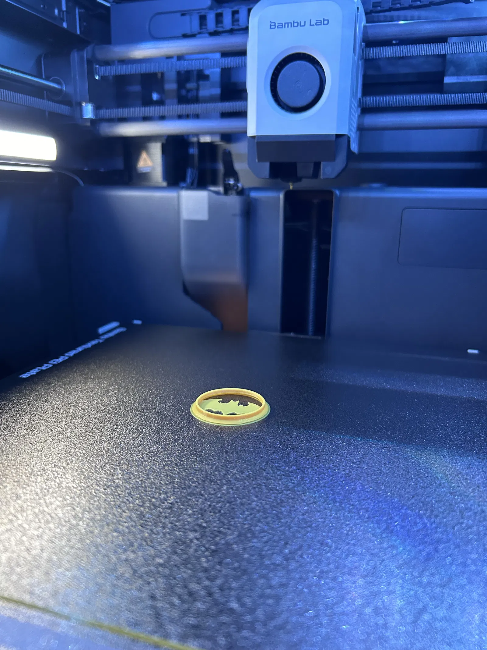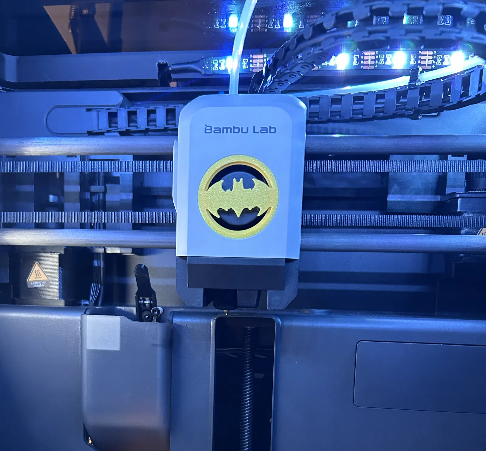 Nắp che cho vỏ trước của P1/X1. Một phụ kiện độc đáo từ Batbu Labs, biến tấu "Mặt Bambu" thành logo Batman huyền thoại, hoàn hảo để trang trí và bảo vệ phần vỏ trước cho máy in P1/X1 của bạn.