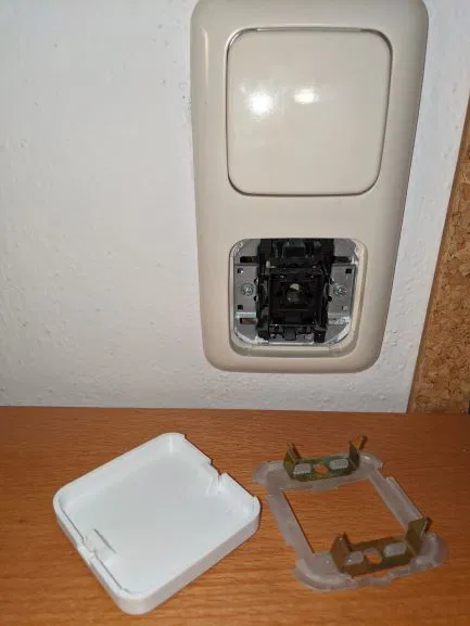 Sau khi lắp đèn thông minh, tui muốn ngăn người ta tắt đèn bằng công tắc thủ công một cách vô ý. Cái này là một cái nắp che, có thể gắn vào thay cho cái cần gạt thông thường trên công tắc đèn Busch-Jäger Duro 2000. Trông nó (gần như) giống cái công tắc bình thường nhưng sẽ không kích hoạt công tắc đèn bên dưới nữa. Gắn cái này vô không cần đụng tới hệ thống điện, chỉ là thay cái bộ phận nhựa che thôi.