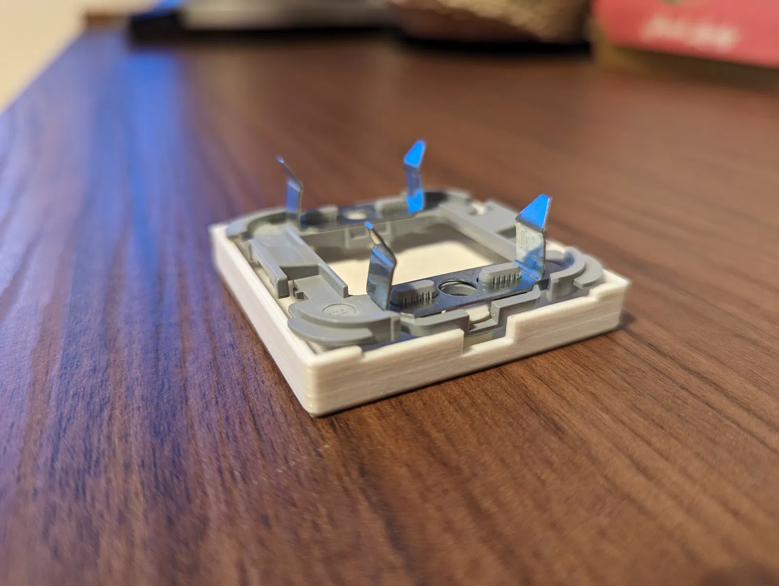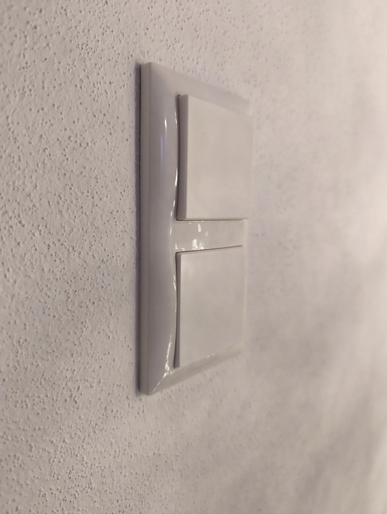 Sau khi lắp đèn thông minh, tôi muốn ngăn chúng bị tắt nhầm qua công tắc đèn thủ công. Đây là một nắp che có thể lắp vào thay cho cần gạt thông thường trong công tắc đèn Busch-Jäger Balance SI. Trông nó (gần như) giống một công tắc bình thường nhưng sẽ không kích hoạt công tắc đèn bên dưới nữa. Lắp đặt không cần đụng chạm gì đến hệ thống điện, chỉ cần thay thế một bộ phận vỏ nhựa.