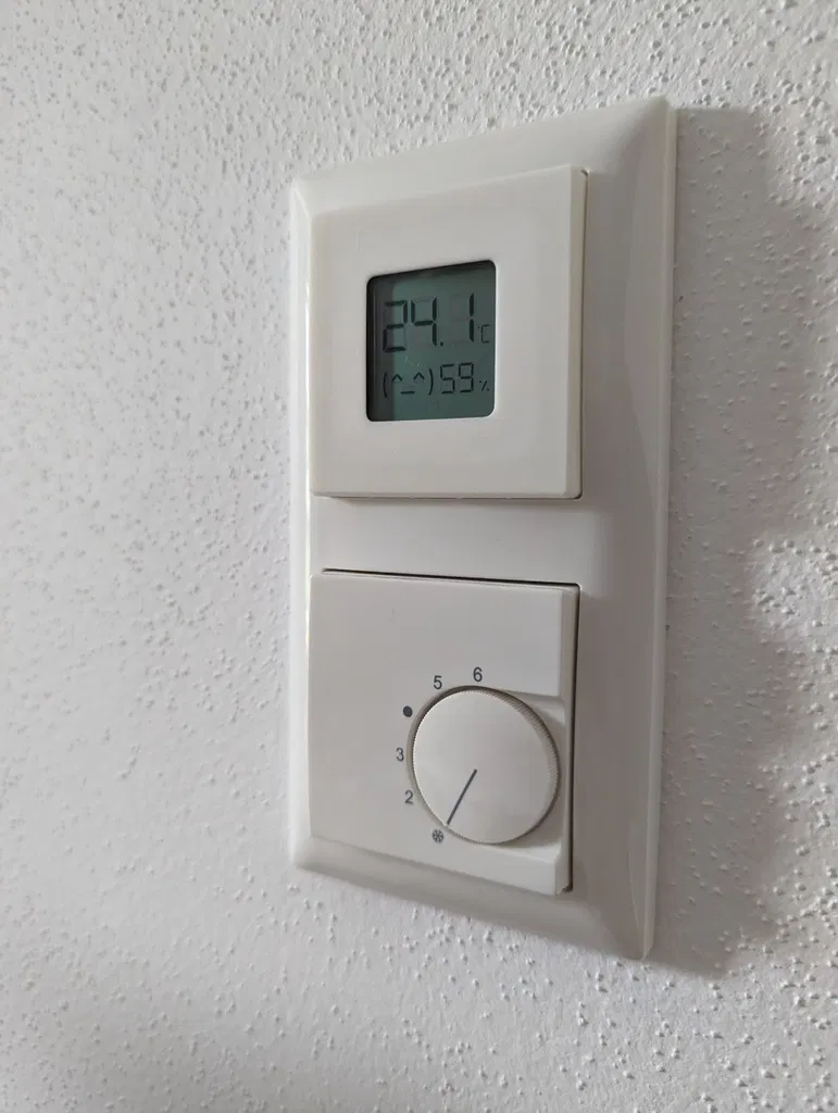 Cái ốp này để gắn cái Mi Temperature and Humidity Monitor 2 vào cái dòng công tắc tường Balance Si của Busch-Jäger đó bà con. Cứ việc bấm vô khung là xong, hơi tốn tí sức nha (nhưng mà gắn vô là chắc cú luôn).